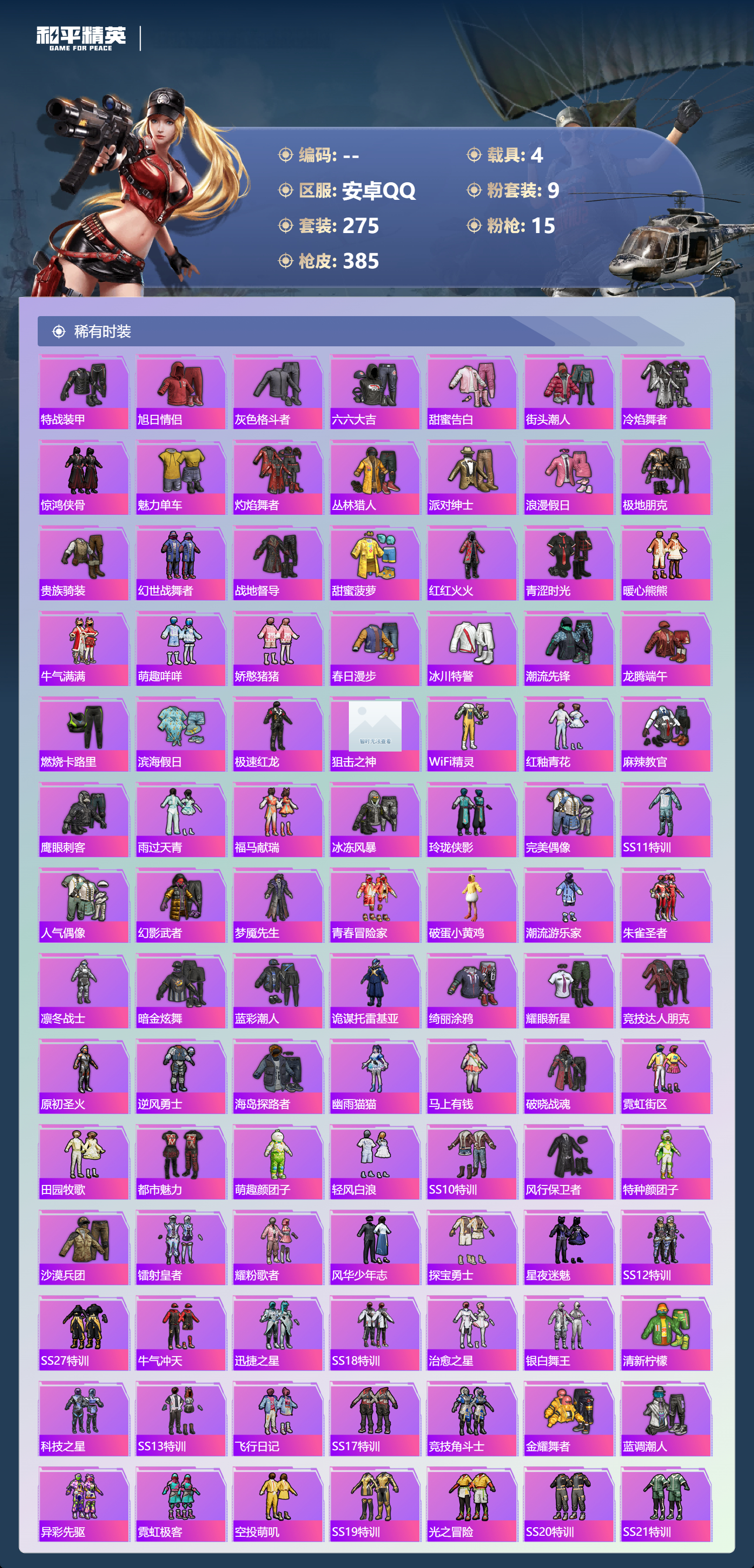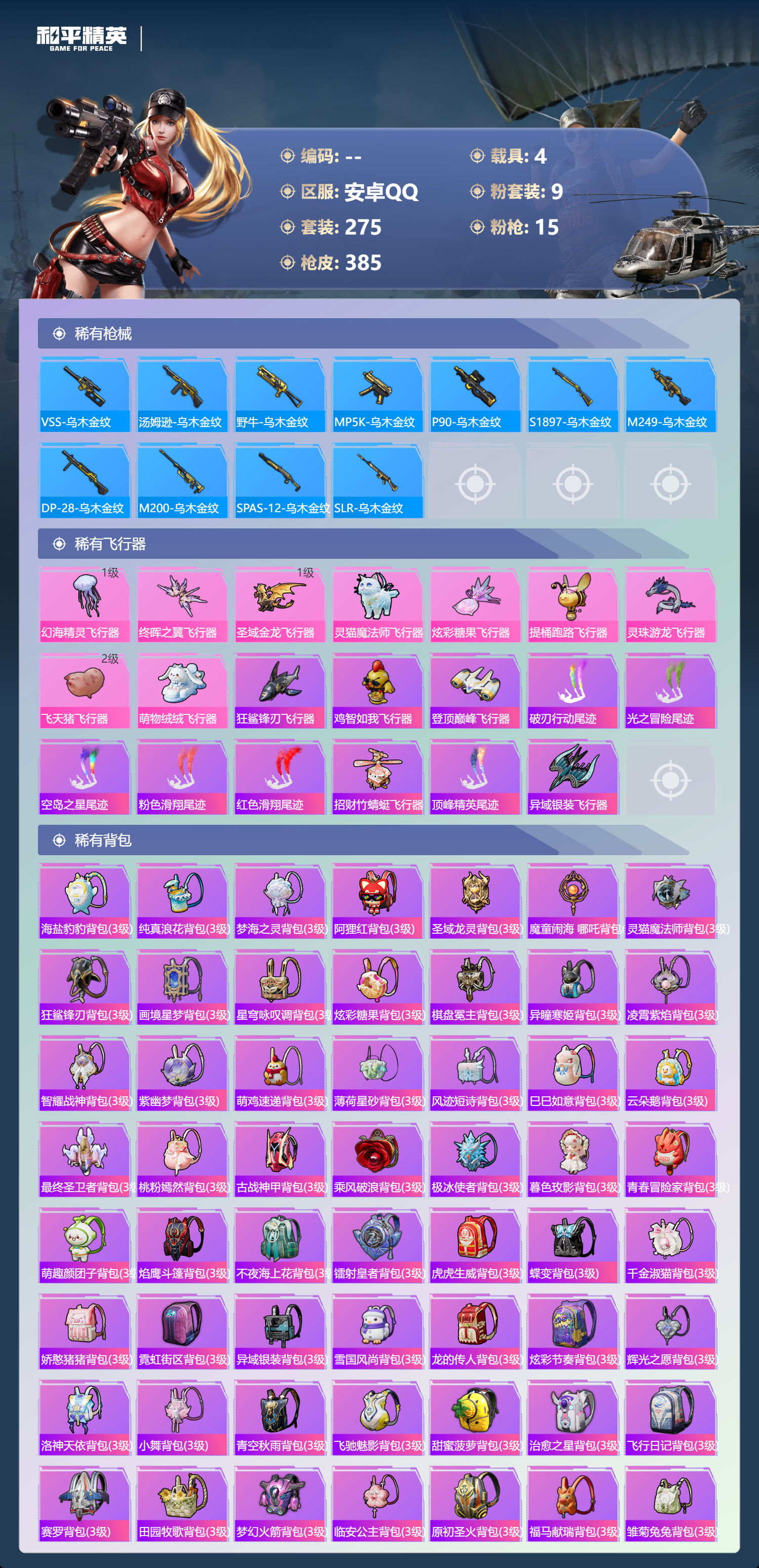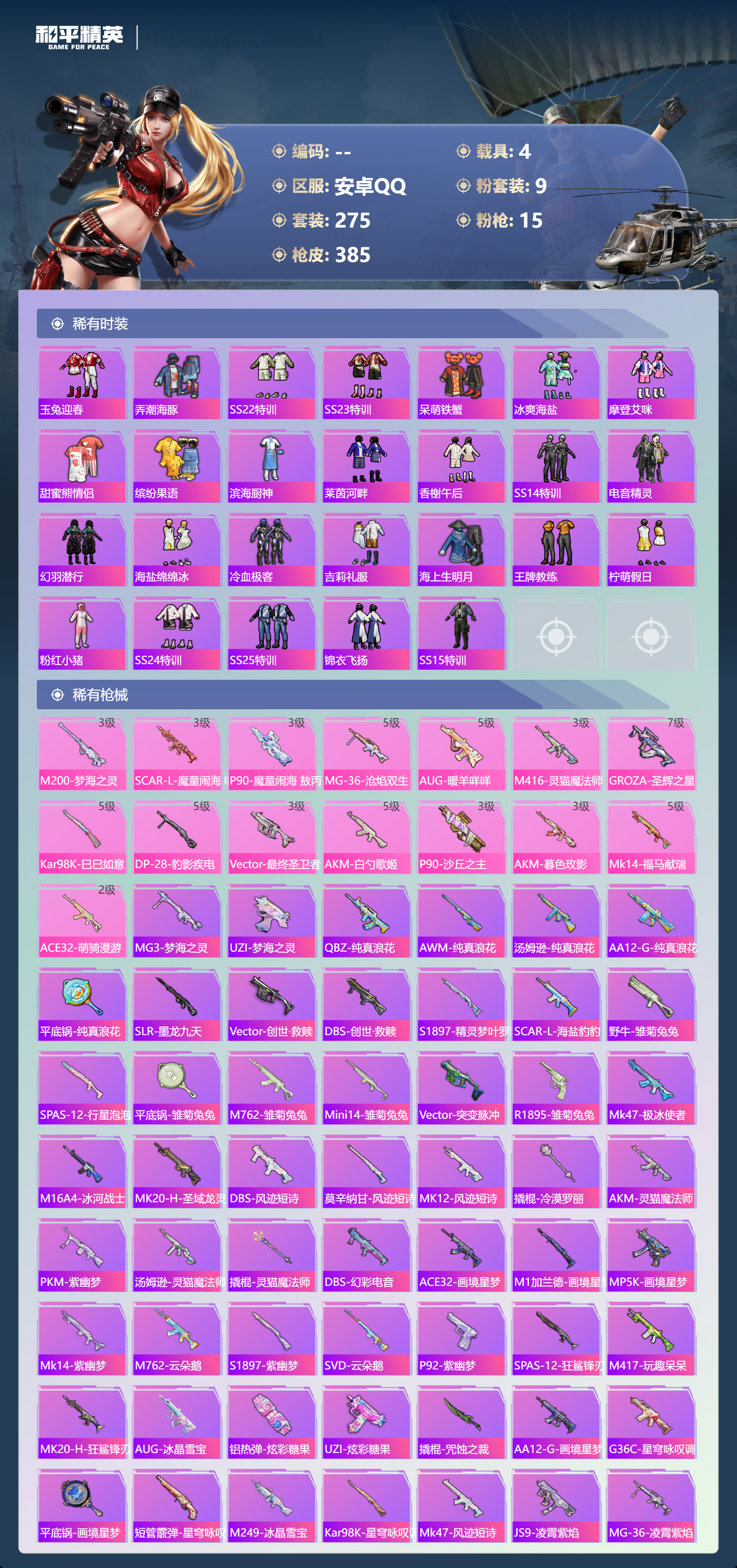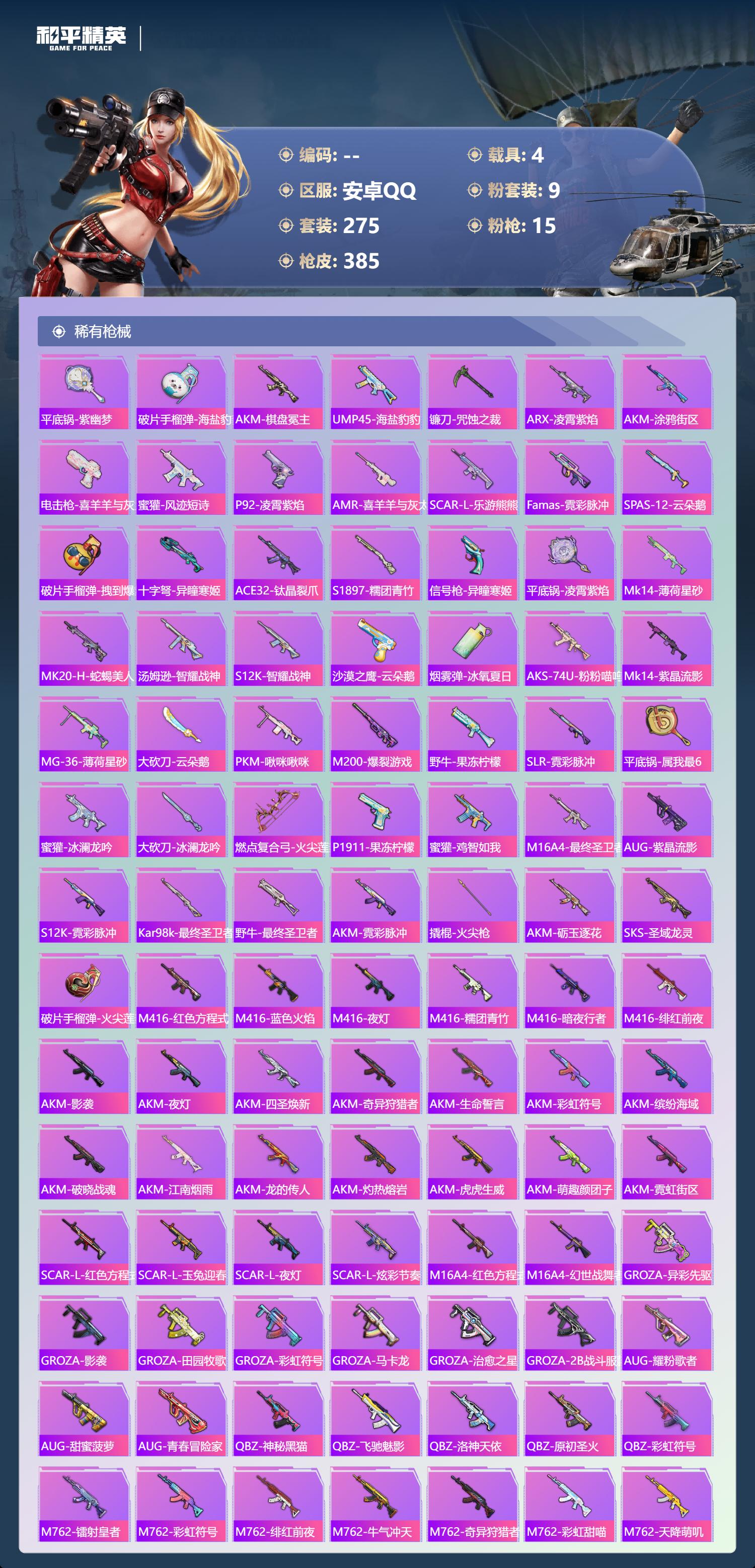 【530791】【不可二次】【安卓QQ】龟仙人 S686-奇异狩猎者 漫步者 P90-沙丘之主 都市猎人 苍蓝魅影 M24-奇异狩猎者 AKM-白勺歌姬 洛天依 极速红龙 M762-奇异狩猎者 沙丘之主-图卡盟 浪漫假日 深海小丑鱼 M24-香水柠檬 抹茶蜜豆 软软马卡龙 激萌罗小黑 AKM-奇异狩猎者 迅捷狂鲨 萌物绒绒飞行器 白月香洋装 梦幻火箭 幻海精灵飞行器 AKM-缤纷海域 粉红小猪