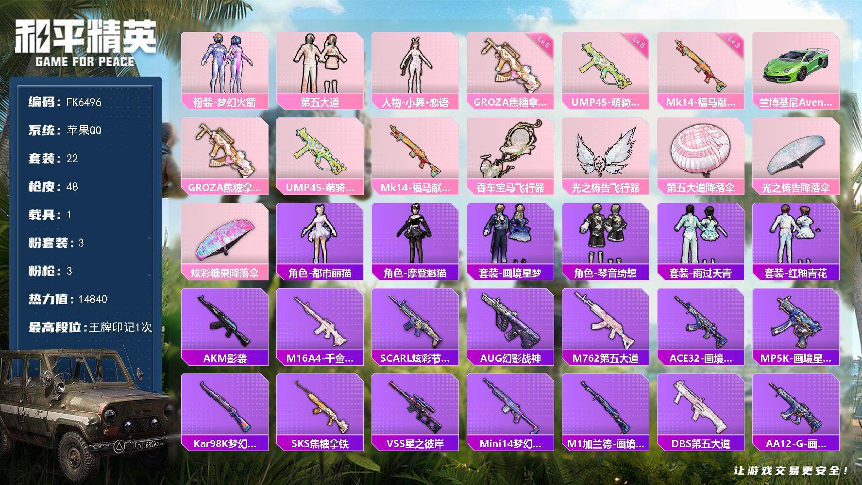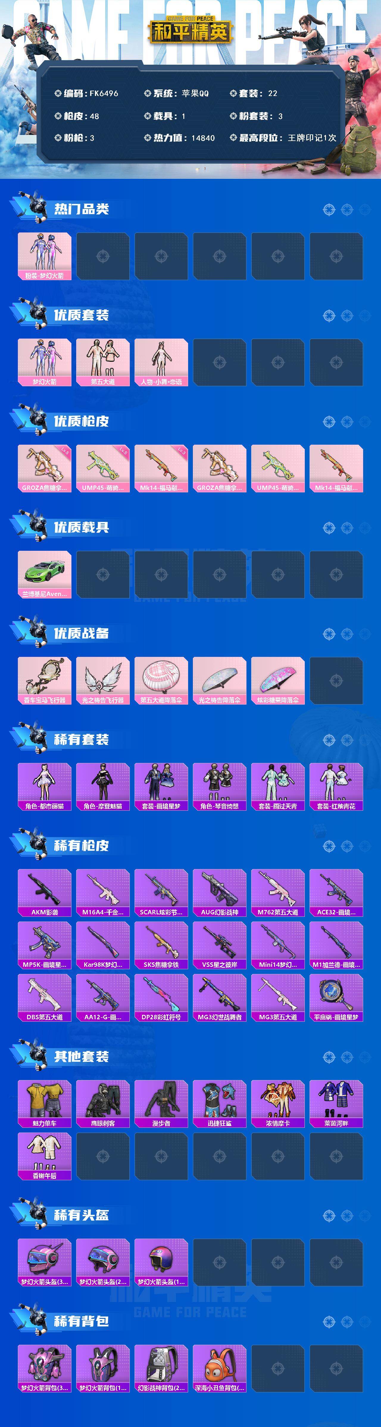 游戏区服:和平精英 / 苹果系统 / QQ帐号