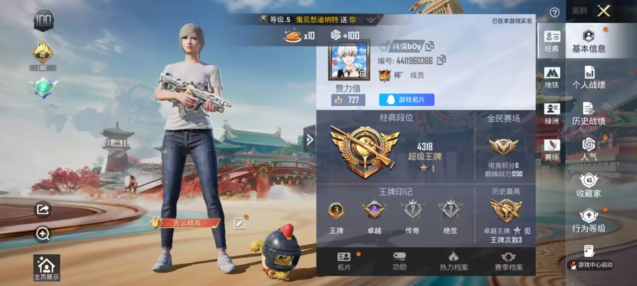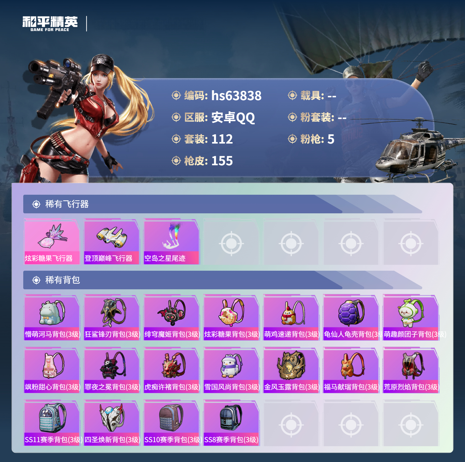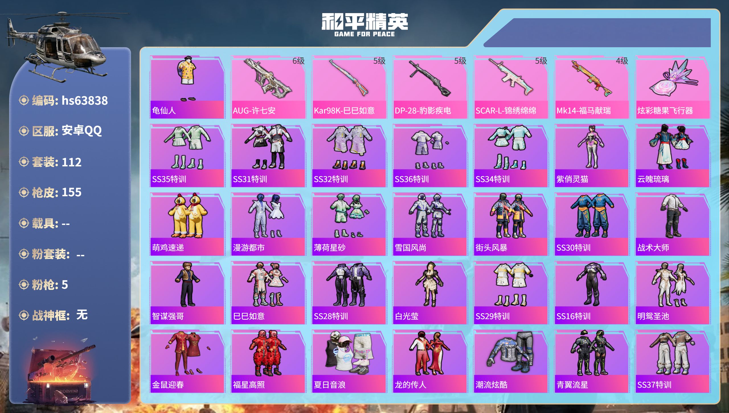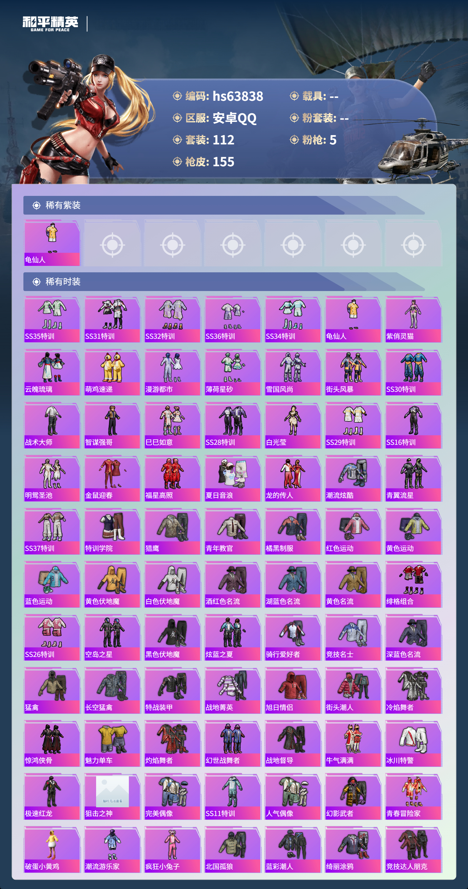 游戏区服:和平精英 / 安卓系统 / QQ账号