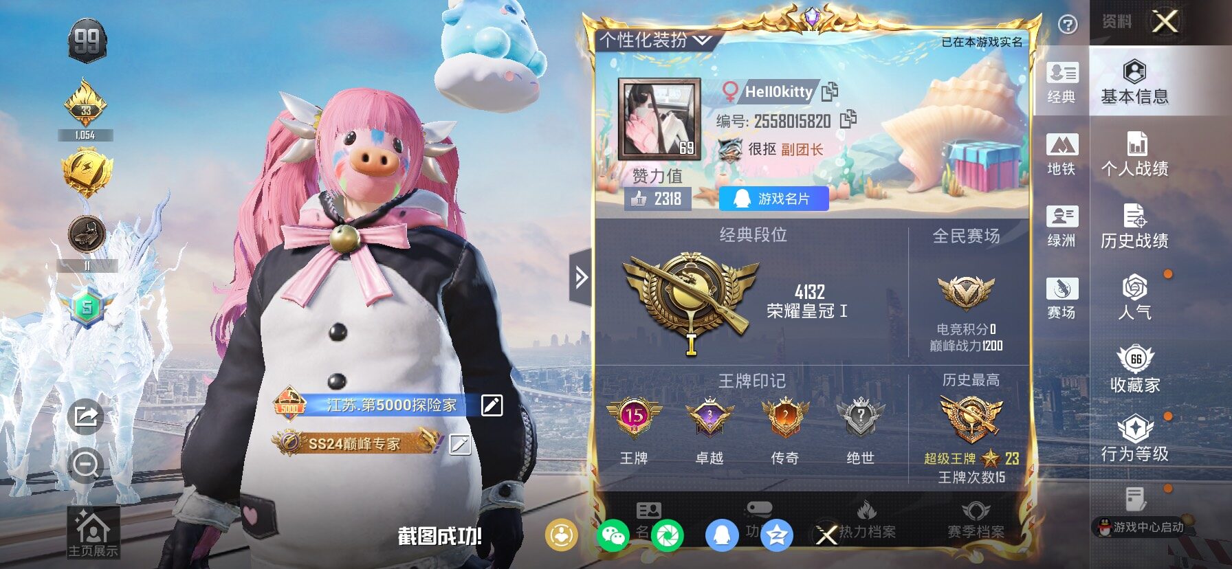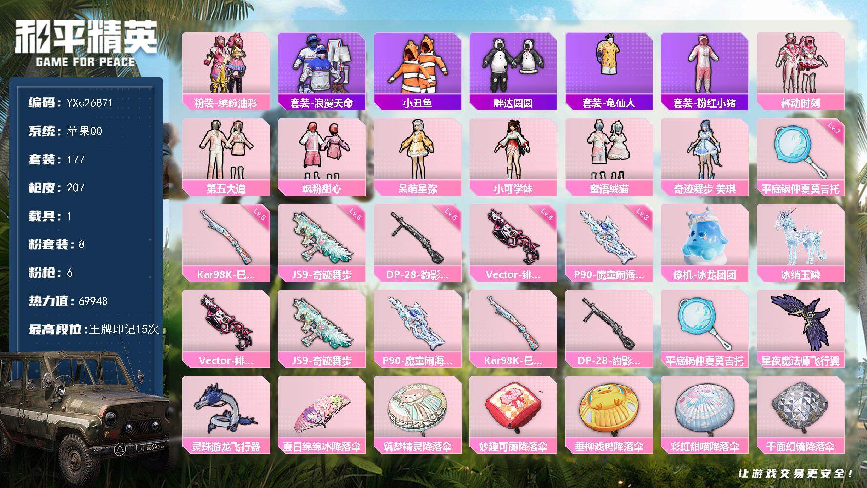 游戏区服:和平精英 / 苹果系统 / QQ帐号