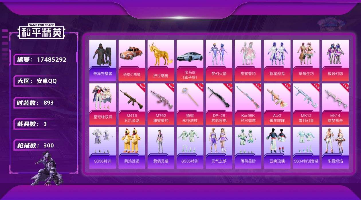 【536416】【可二次】【安卓QQ】俏皮小熊猫 M762甜蜜誓言 梦幻火箭 M416-五爪金龙 萌兔起飞 奇异狩猎者 新星烈龙 草莓生巧 甜蜜誓约 极致幻想