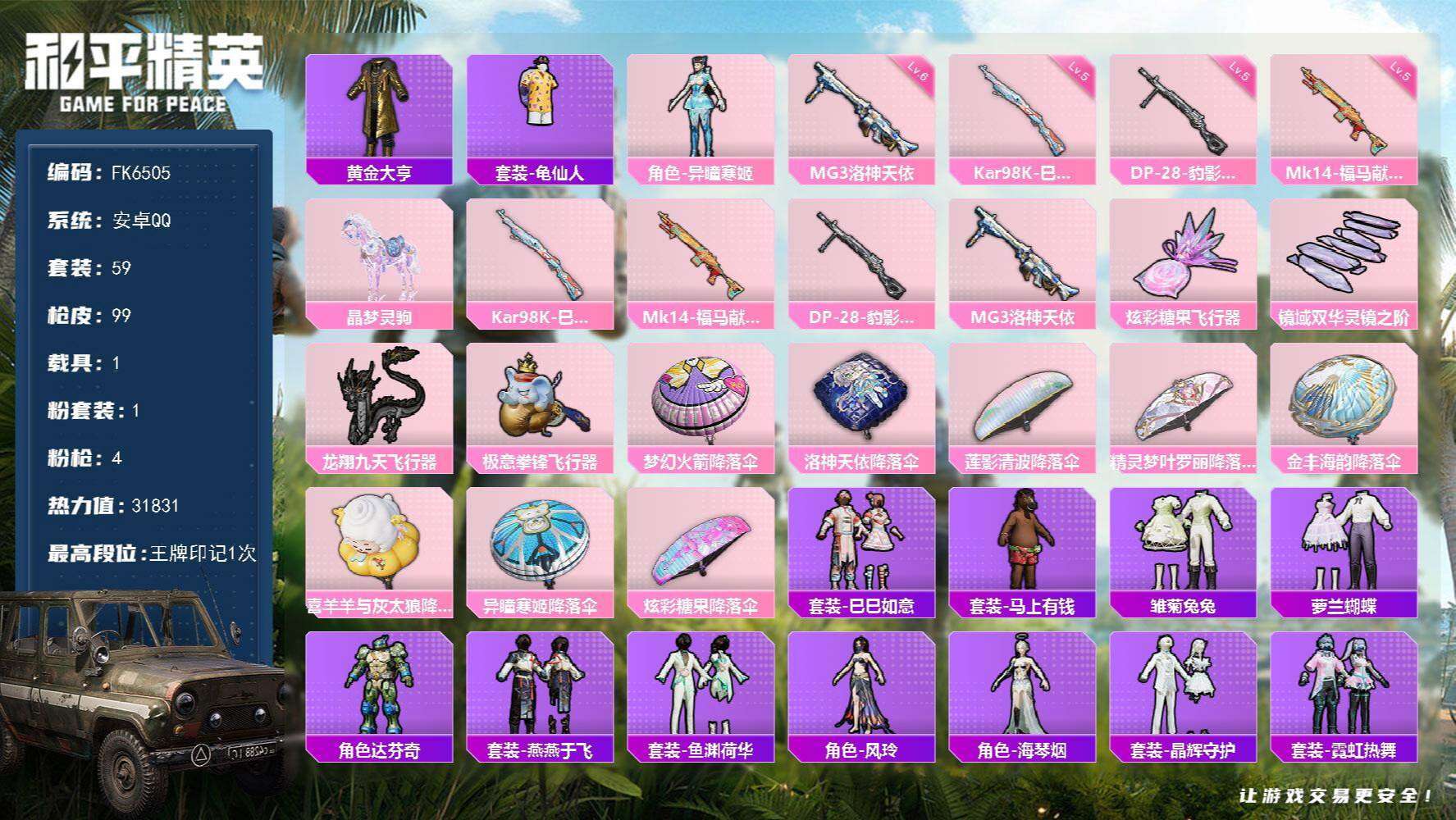 游戏区服:和平精英 / 安卓系统 / QQ账号