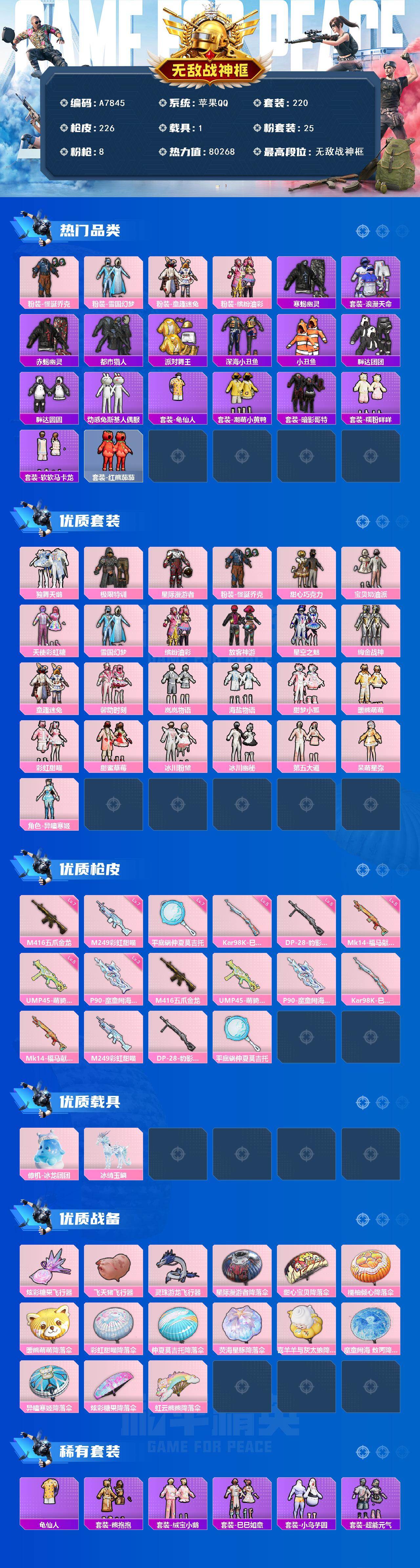 游戏区服:和平精英 / 苹果系统 / QQ帐号