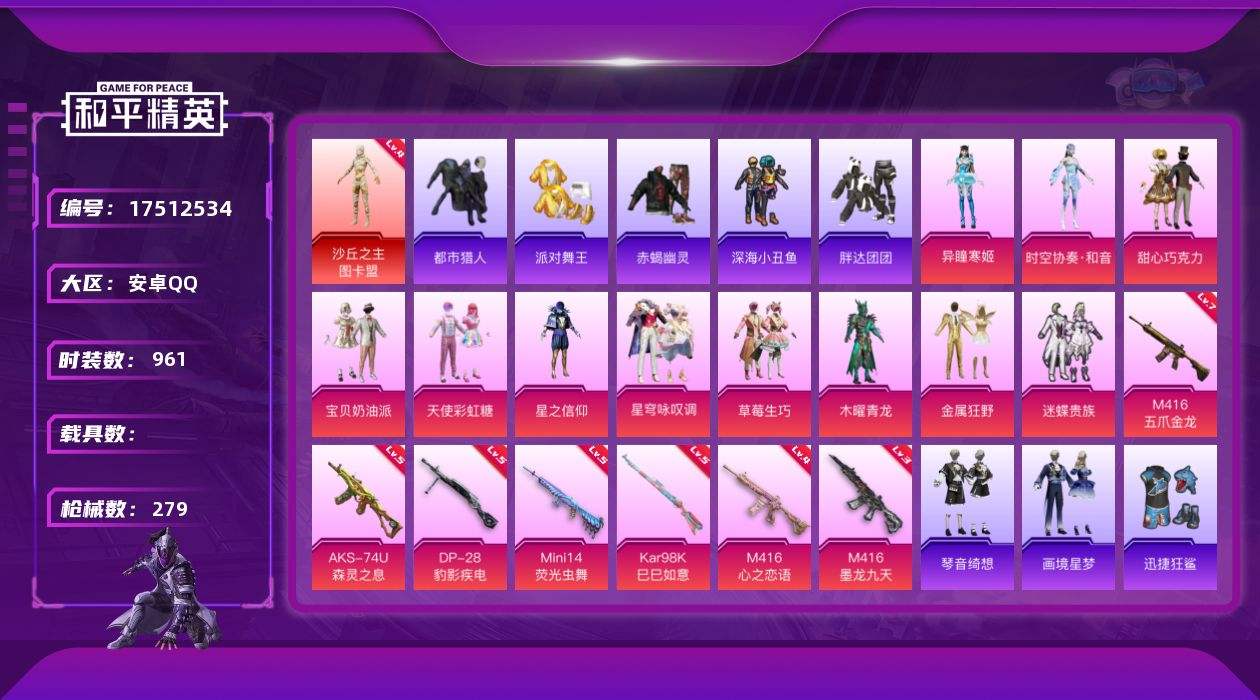 【539824】【不可二次】【安卓QQ】木曜青龙 水银刺客 S686-奇异狩猎者 M416-五爪金龙 漫步者 M416-星际漫游 都市猎人 木耀青龙 东方飞龙 金属狂野 极速红龙 忍者信条 赤蝎幽灵 M762-奇异狩猎者 沙丘之主-图卡盟 恶魔人蛛 M416-心之恋语 深海小丑鱼 Mini14-荧光虫舞 浪漫天命 胖达团团 星之信仰 SS1特训 迷蝶贵族 迅捷狂鲨 黑色刀锋 甜心巧克力 狂沙舞者