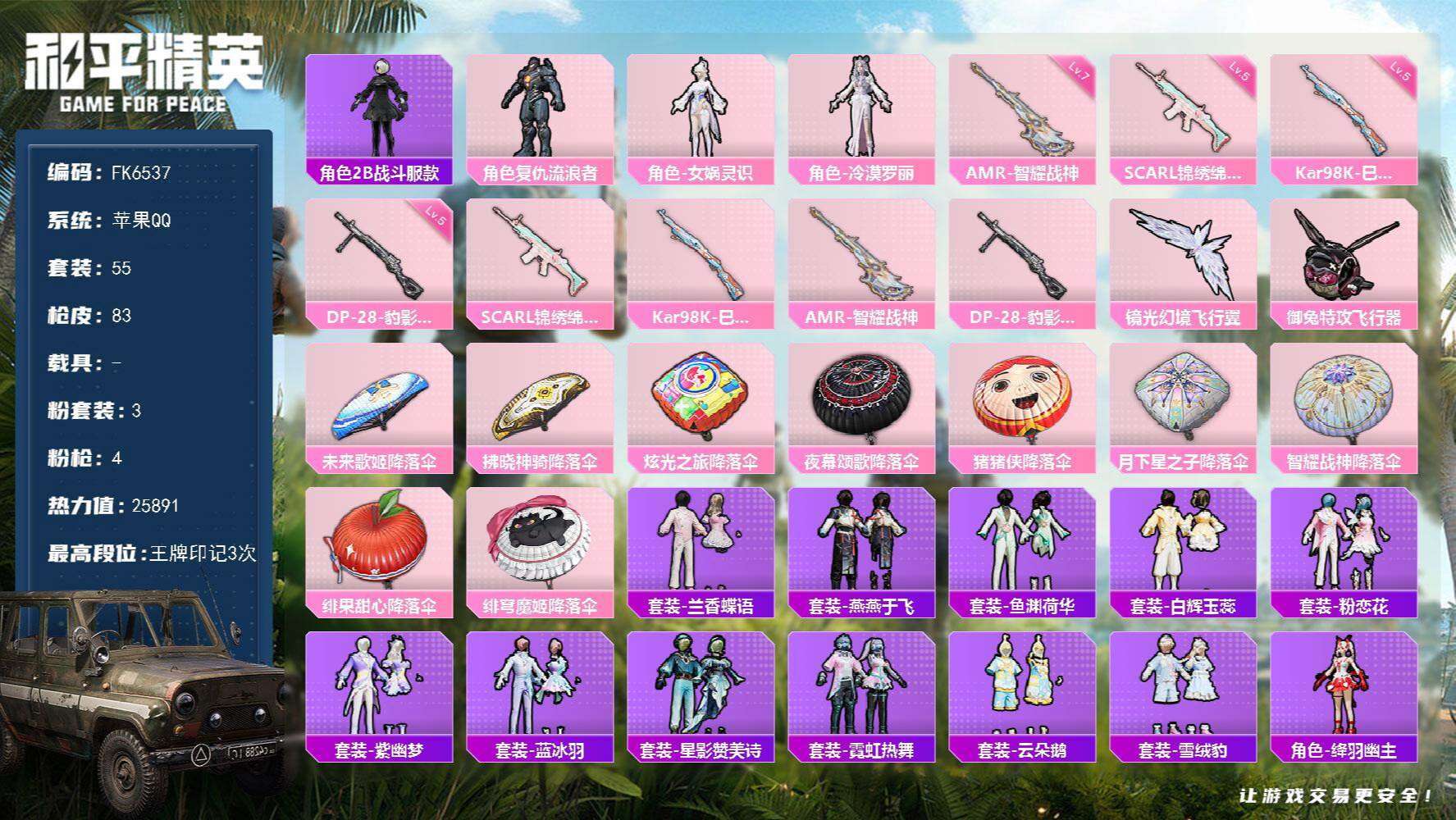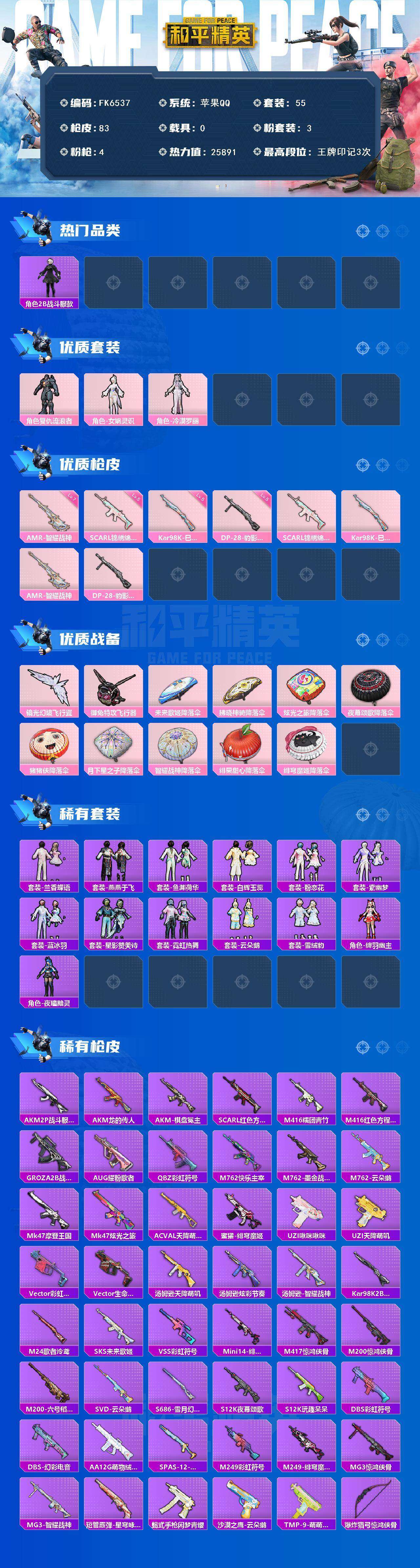 游戏区服:和平精英 / 苹果系统 / QQ帐号
