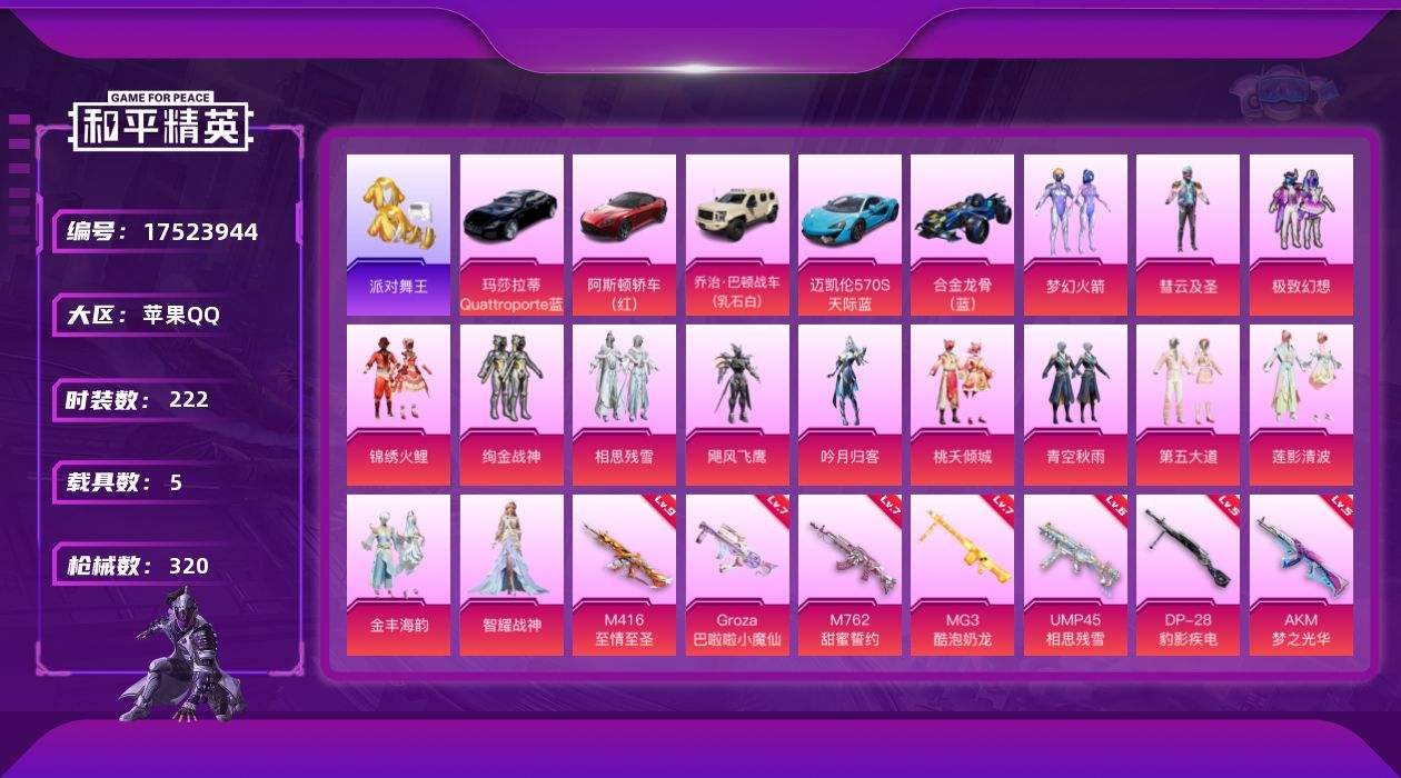 【541477】【可二次】【苹果QQ】合金龙骨蓝色 SCAR-L梦幻火箭 极致幻想 迈凯伦570S 天际蓝 相思残雪 乔治巴顿战车(黑) AKM-炫紫旋律 吟月归客 M762甜蜜誓言 梦幻火箭 AKM-梦之光华 M416-心之恋语 阿斯顿马丁S红色 UMP45-相思残雪 浪漫波比 激萌小黄鸭 慧云及圣 AUG-星之彼岸 98K-伏魔团