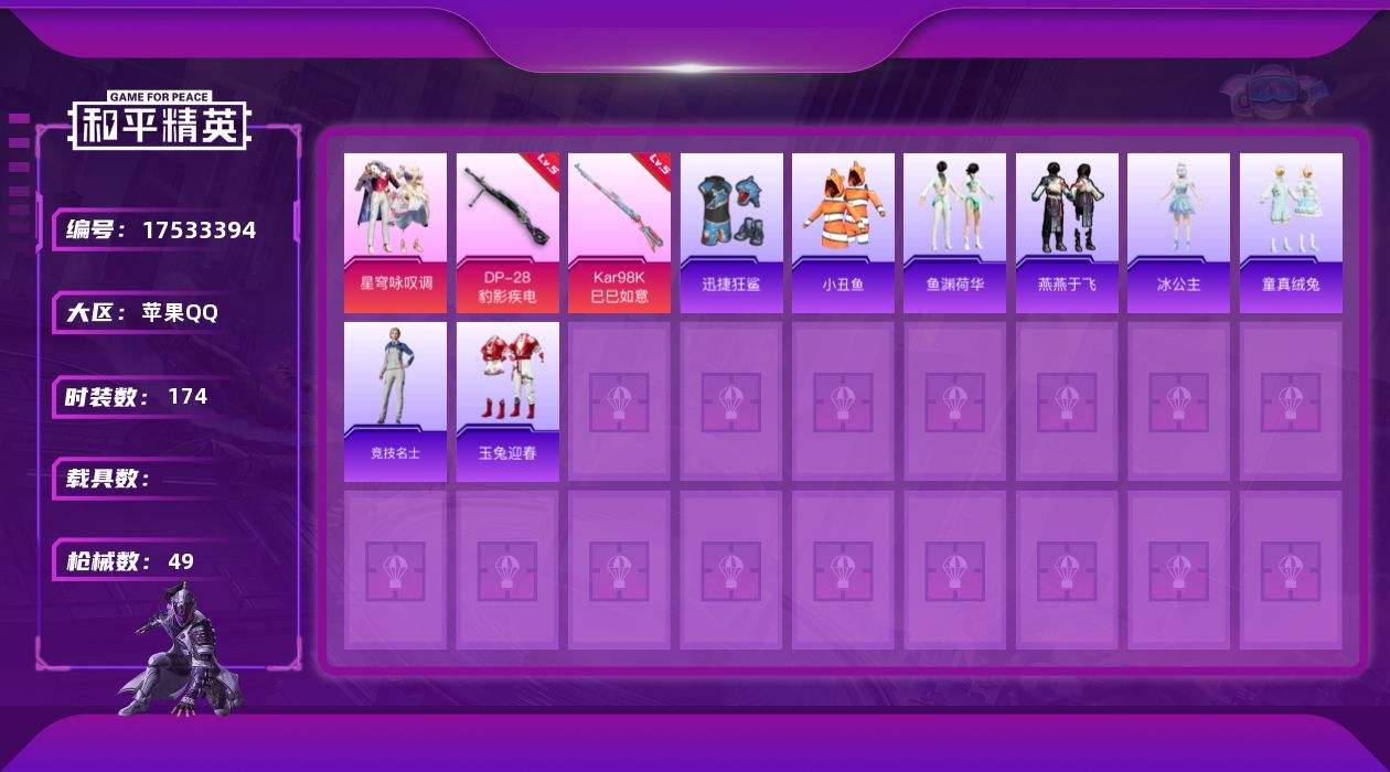 游戏区服:和平精英 / 苹果系统 / QQ帐号