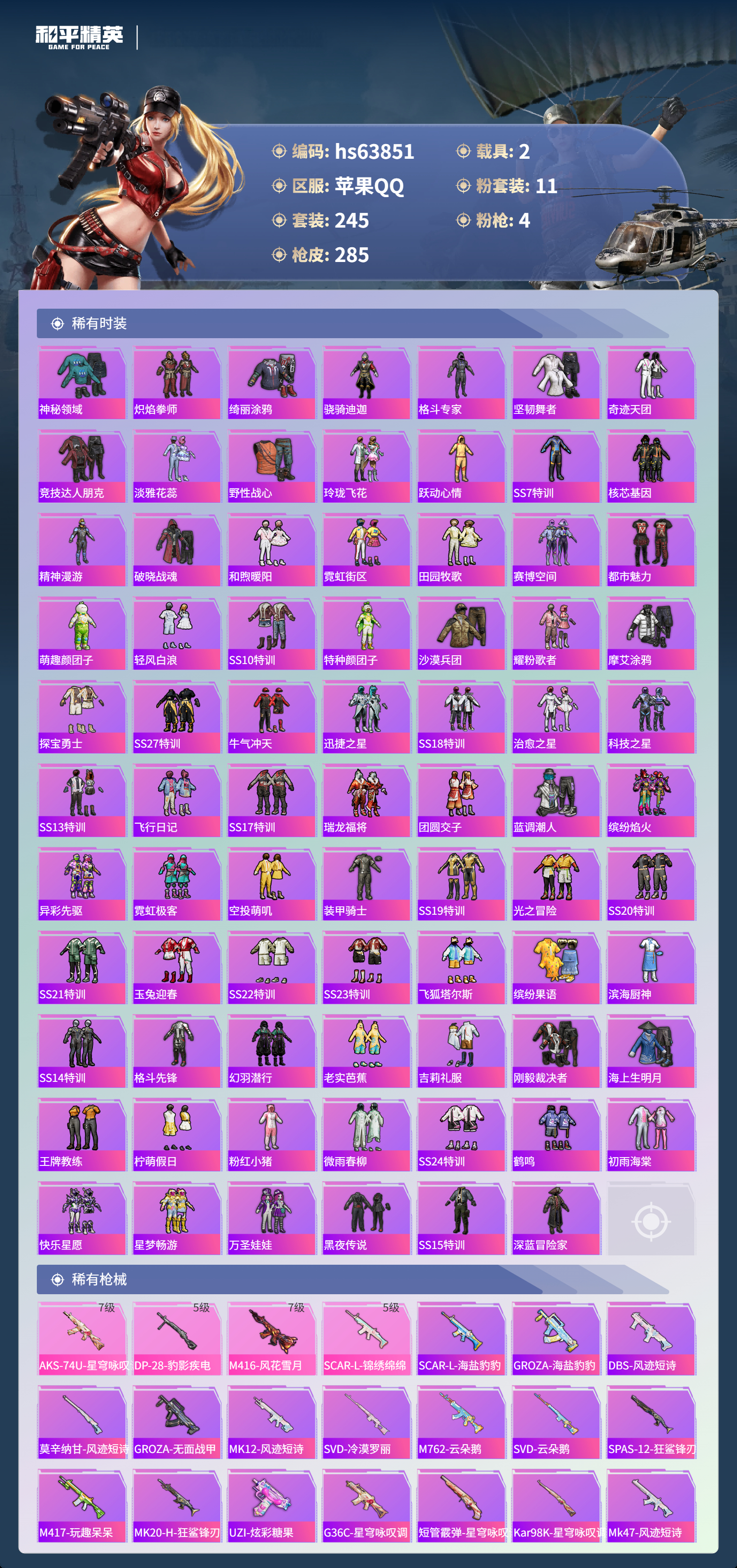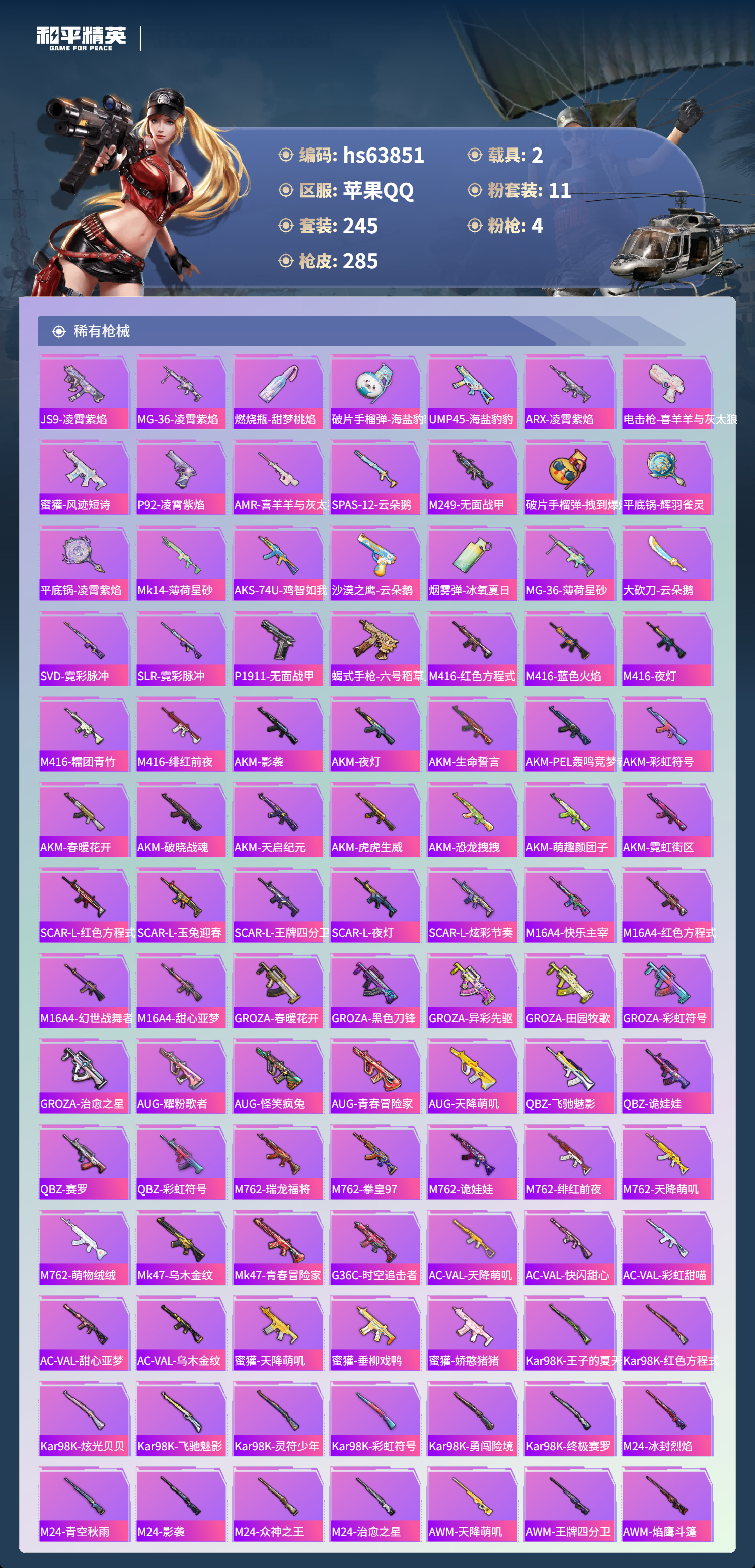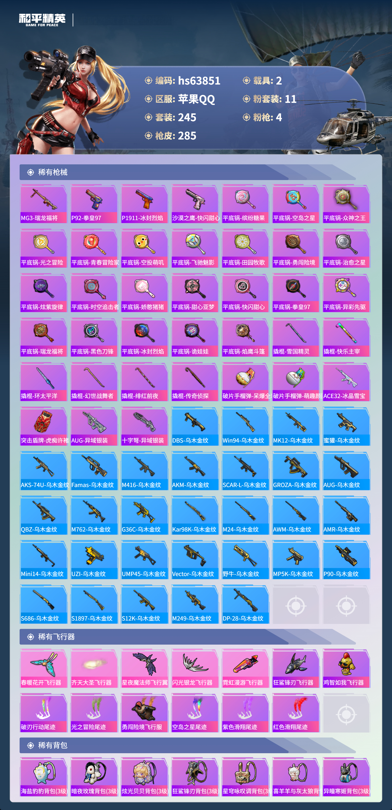 【546412】【可二次】【苹果QQ】大橘为重 特斯拉R尊享铂 特斯拉3银色 韶华初心 金属狂野 极速红龙 赛博空间 银刃赛罗 软嫩糖心蛋 缤纷油彩 影双刃 瑞龙福将 激萌小黄鸭 蝶舞迷情 梦之呓语 激萌罗小黑 团圆交子 VSS-烈焰拳霸 迅捷狂鲨 奇异狩猎者 M762-瑞龙福将 齐天大圣飞行器 潮萌小黄鸭 黑色刀锋 天启纪元 春暖花开飞行器 金羽特工 SCAR-L-锦绣绵绵 M416-风花雪月