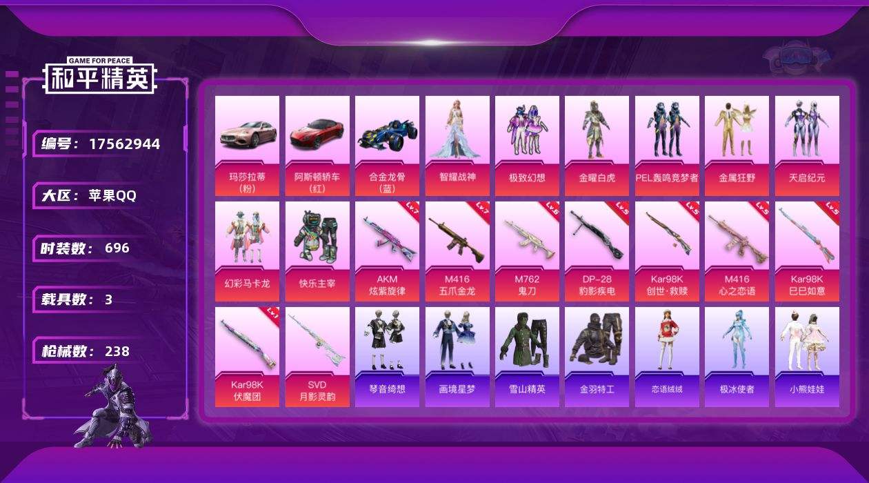 【546543】【不可二次】【苹果QQ】合金龙骨蓝色 大橘为重 M416-五爪金龙 金曜白虎 M249-古堡领主 机械英豪 金属狂野 繁花小夜曲飞行翼 快乐主宰 软嫩糖心蛋 M416-心之恋语 Kar98K-伏魔团 98K-伏魔团 纯白誓言 软萌银虎 幻彩马卡龙 暗夜契约 黑色刀锋 海洋之心 极致幻想 天启纪元 金羽特工 AKM-炫紫旋律 白月香洋装 阿斯顿马丁S红色 AKM-缤纷海域 PEL轰