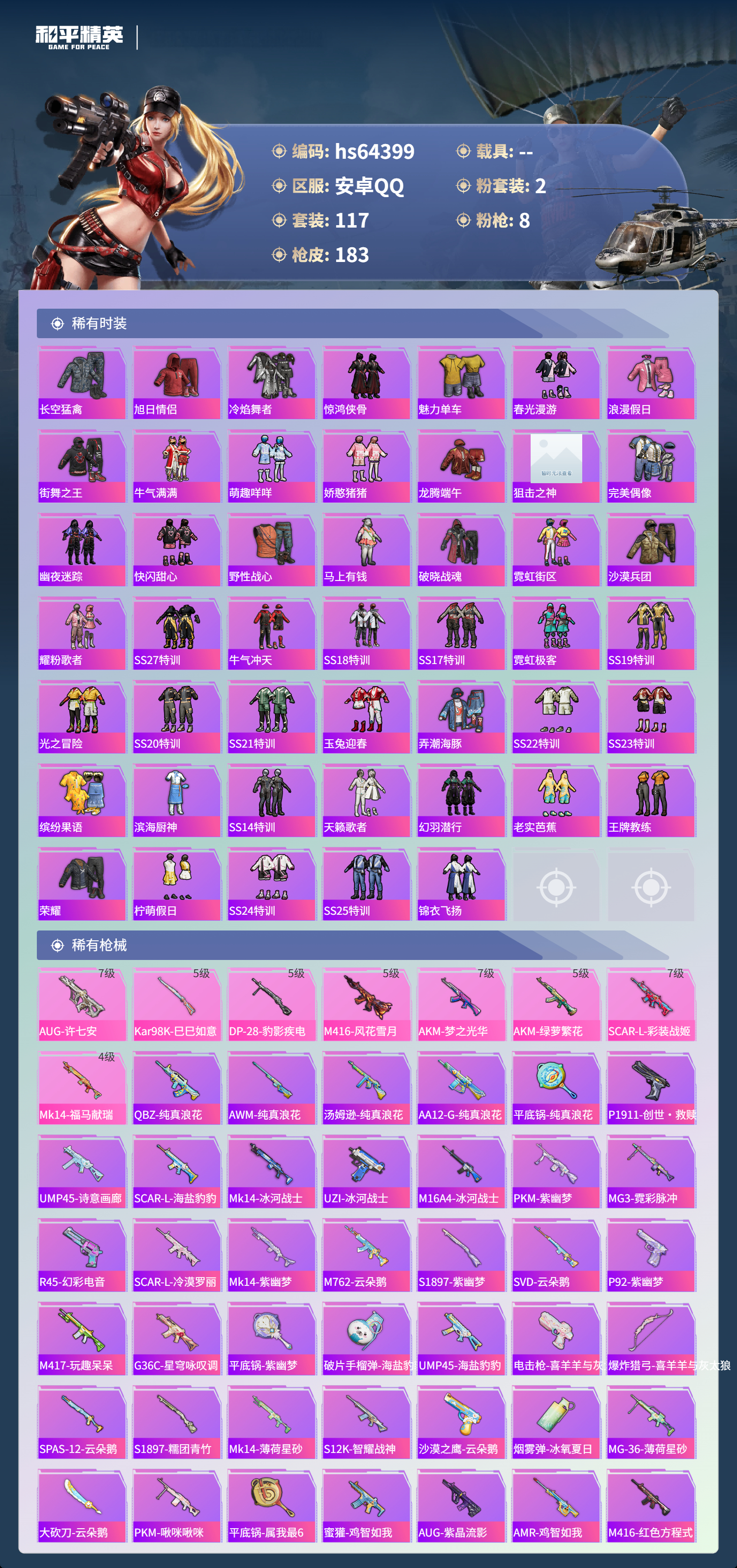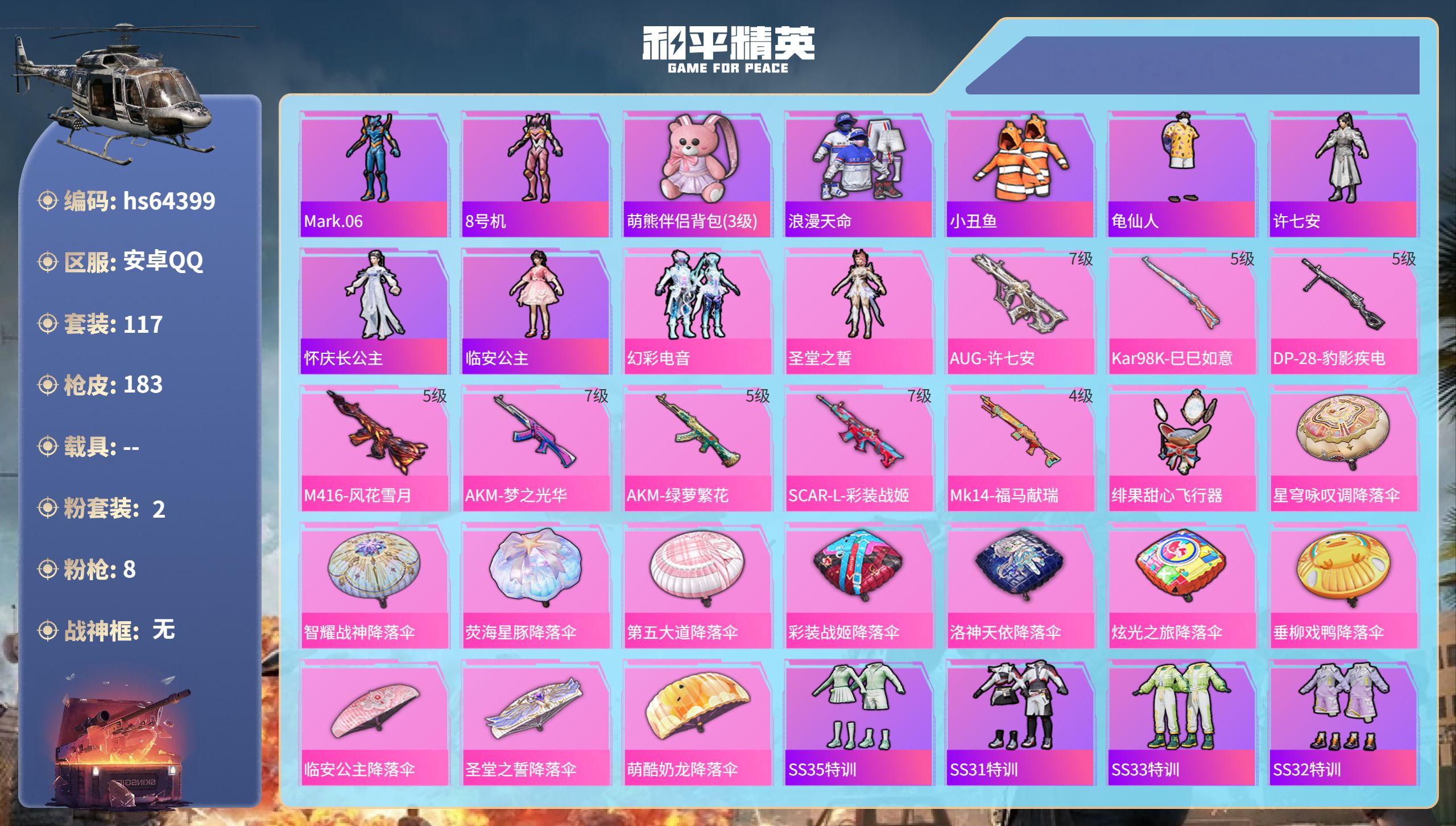 游戏区服:和平精英 / 安卓系统 / QQ账号