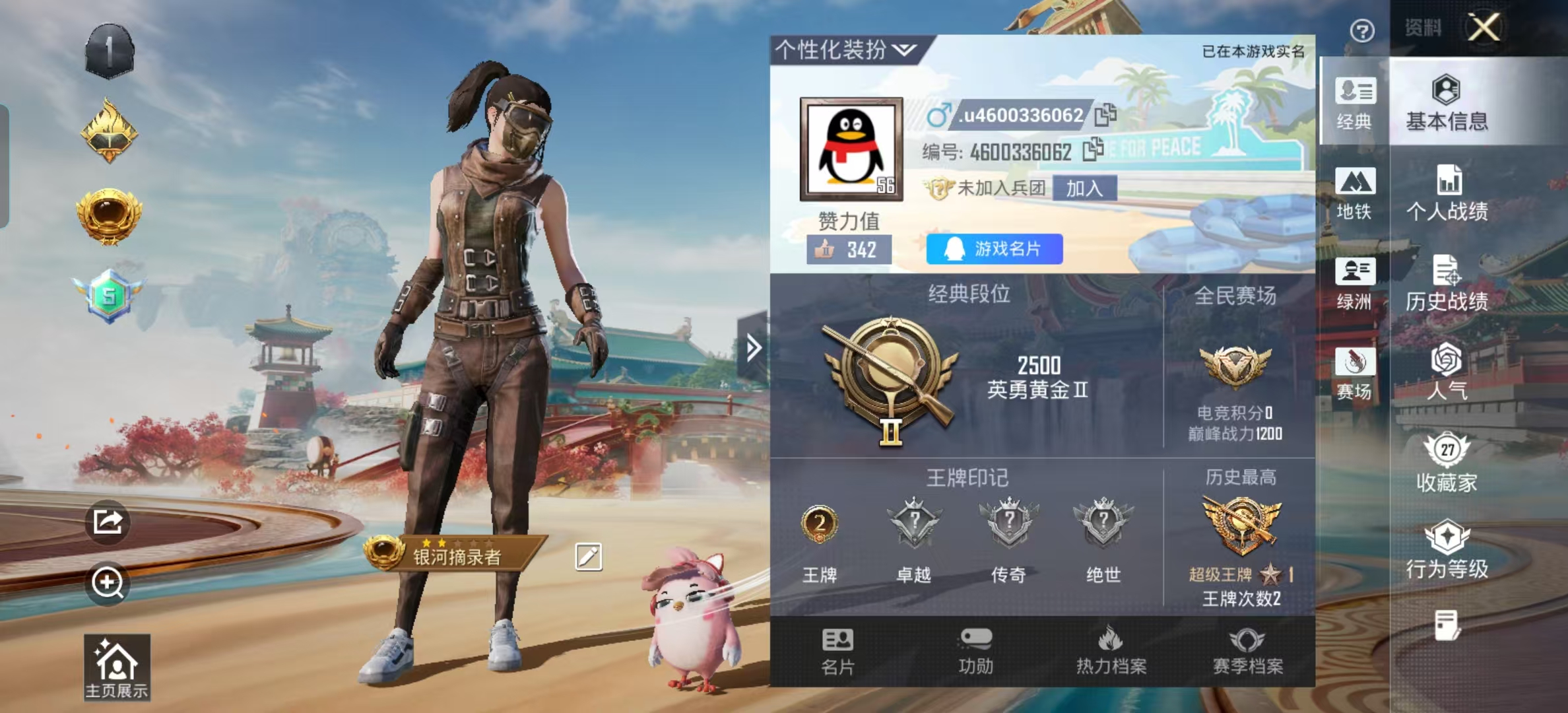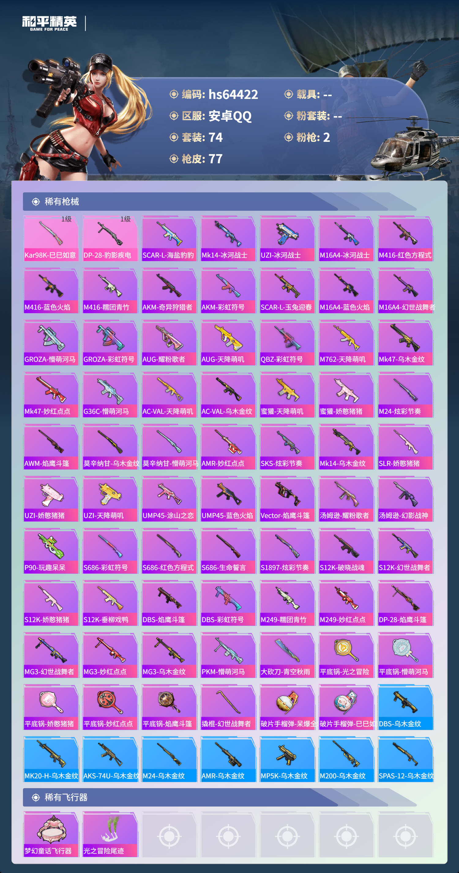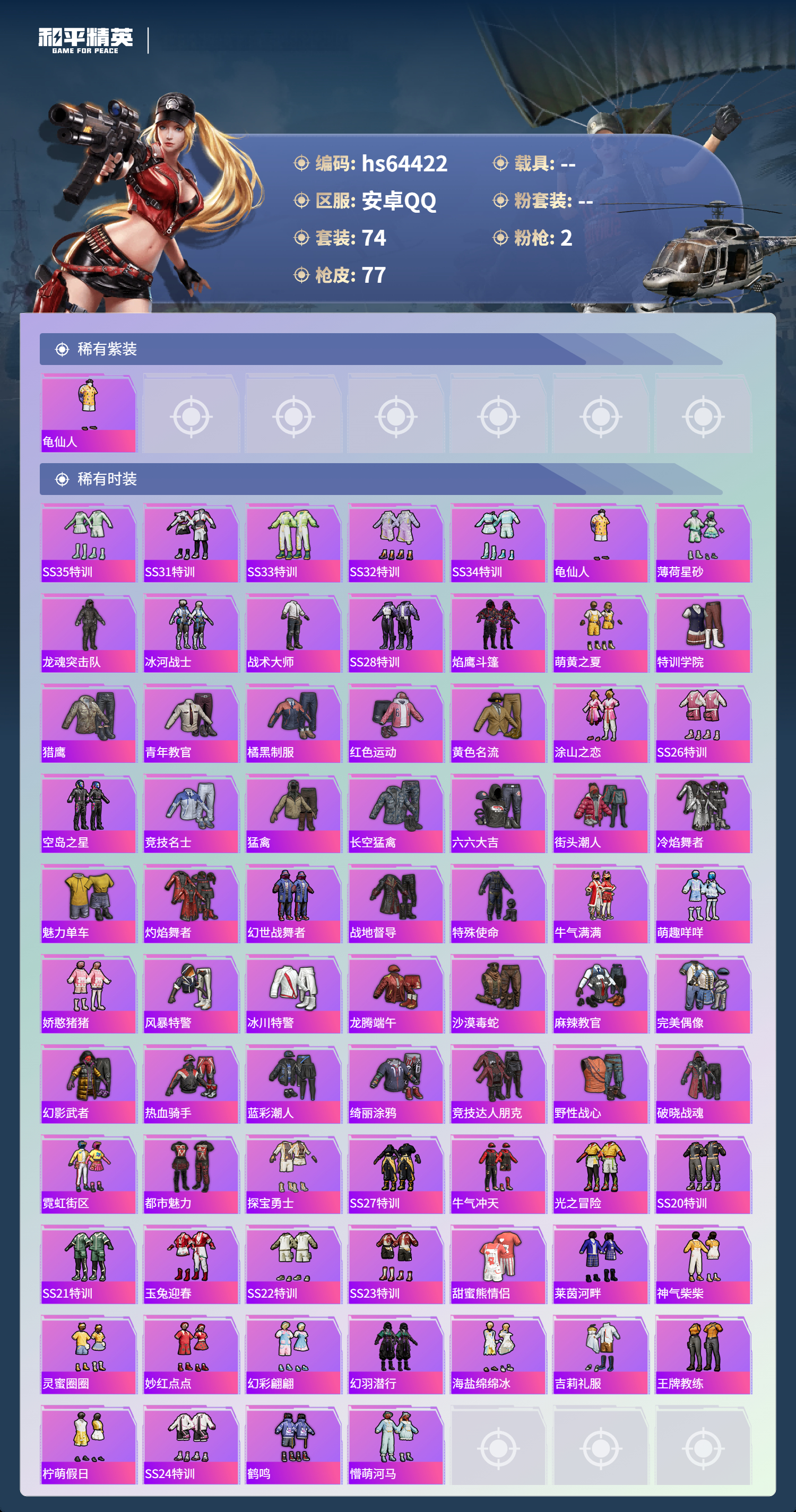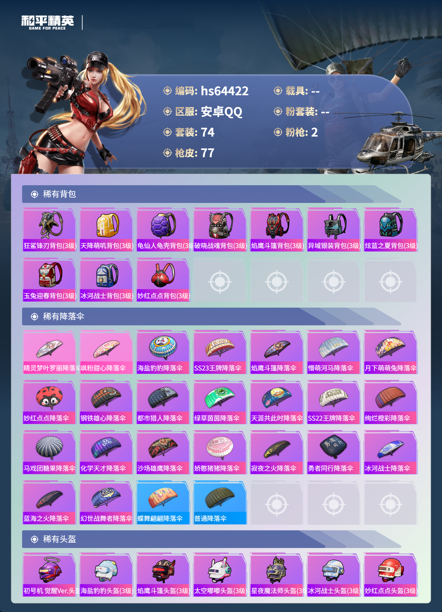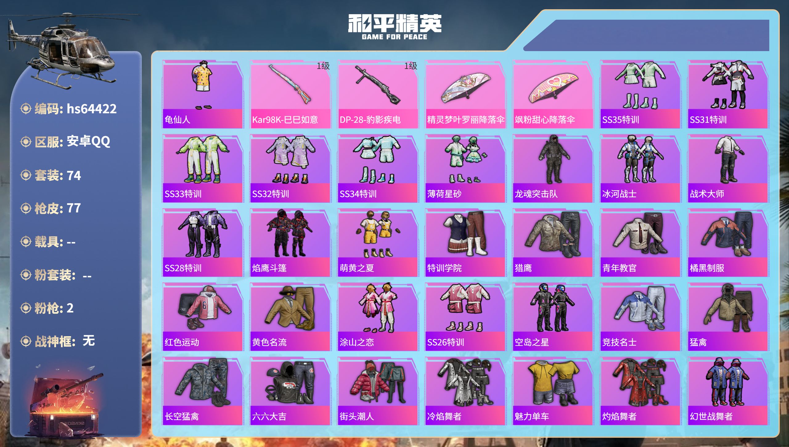 游戏区服:和平精英 / 安卓系统 / QQ账号