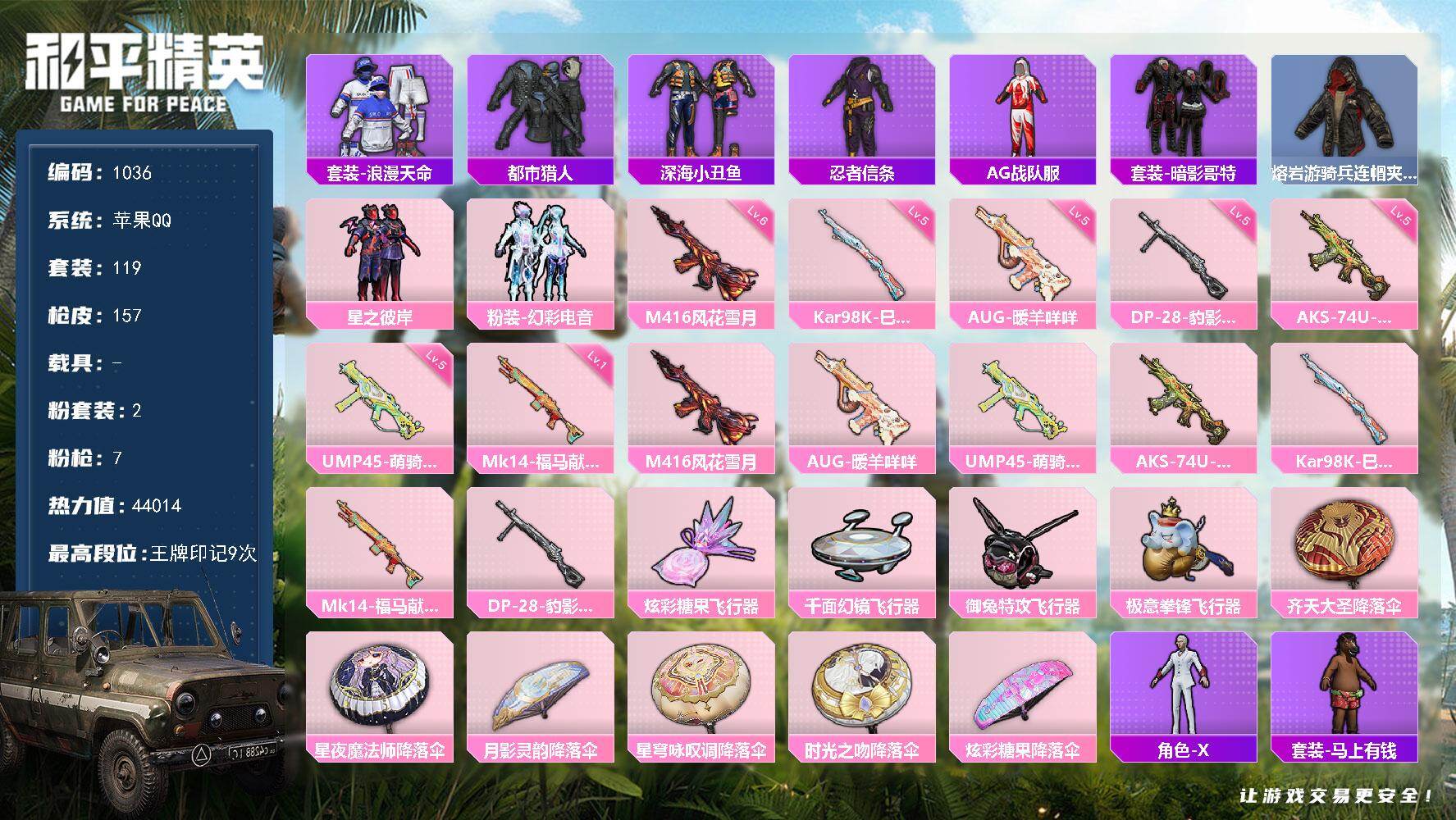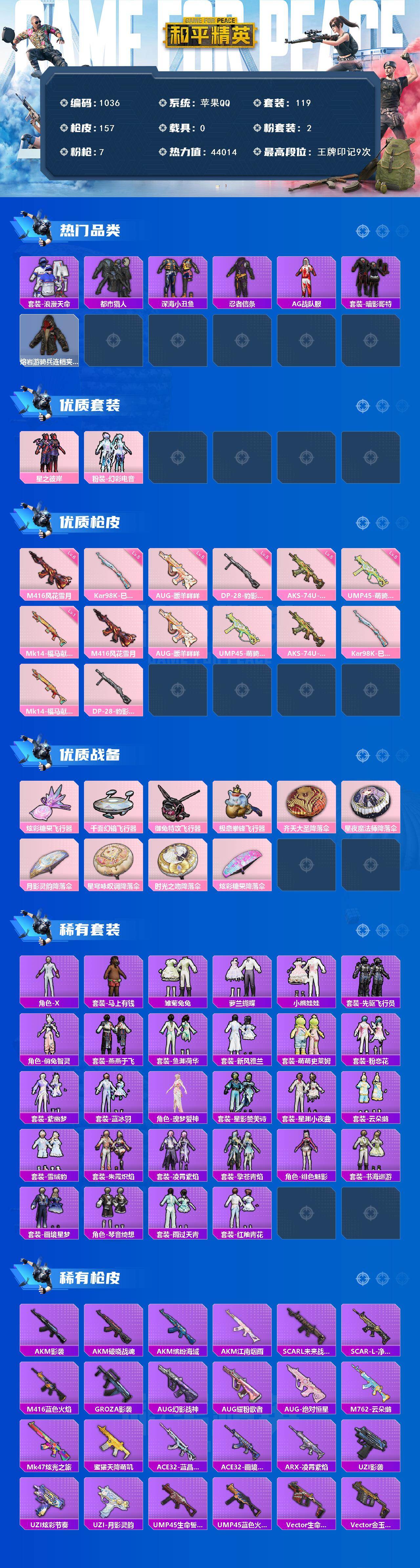 游戏区服:和平精英 / 苹果系统 / QQ帐号