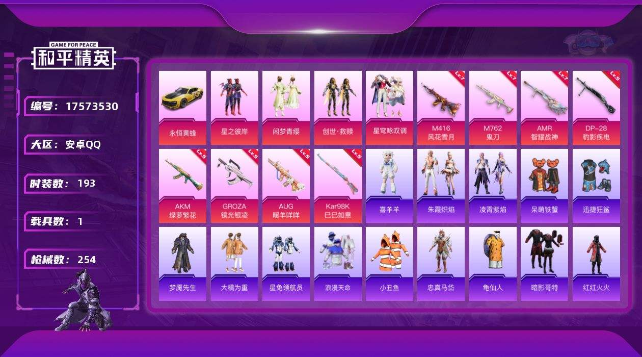 游戏区服:和平精英 / 安卓系统 / QQ账号