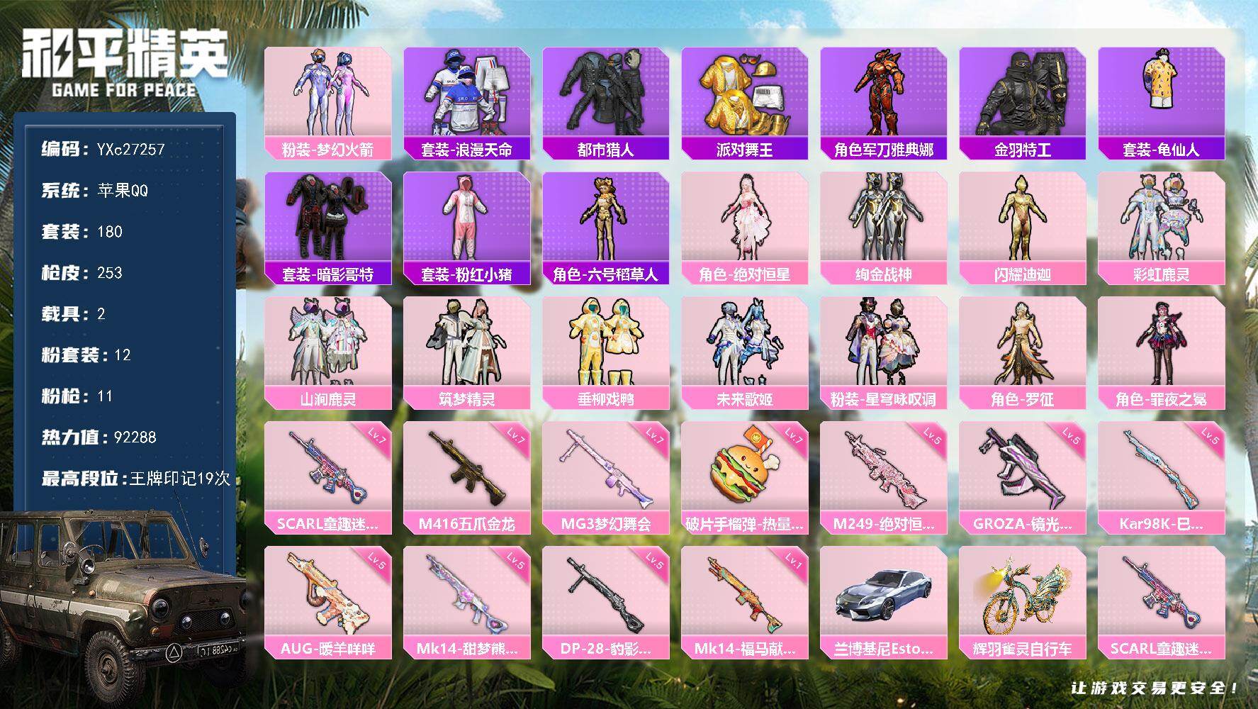 【552223】【可二次】【苹果QQ】龟仙人 齐天大圣降落伞 M416-五爪金龙 漫步者 迪迦奥特曼 都市猎人 兰博轿车尊享铂 汤姆逊-林间仙鹿 Mini14-林间仙鹿 闪耀迪迦型 恶魔人蛛 GROZA-林间仙鹿 海渊国主降落伞 山涧鹿灵 瑞龙福将 浪漫天命 MG3-梦幻舞会 旋转彩虹降落伞 团圆交子 绚金战神 M762-瑞龙福将 齐天大圣飞行器 林间仙鹿降落伞 狂沙舞者 彩虹鹿灵 金羽特工 彩