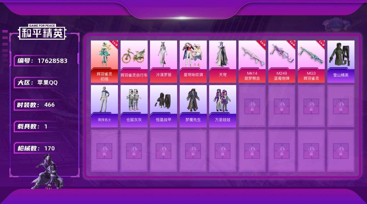 【554422】【不可二次】【苹果QQ】仓鼠灰灰 M416-仓鼠灰灰 M249-蓝莓炮弹 M762-瑞龙福将 瑞龙福将 辉羽雀灵-初翊 极速红龙 雪山精英 团圆交子
