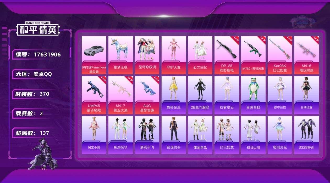 【555064】【可二次】【安卓QQ】M416-电玩时刻 龟仙人 AUG-星梦奇缘 星梦玉骢 M762-青锋波束 UMP45-量子极限 粉红小猪 M417射手步枪 M417-第五大道 团圆交子
