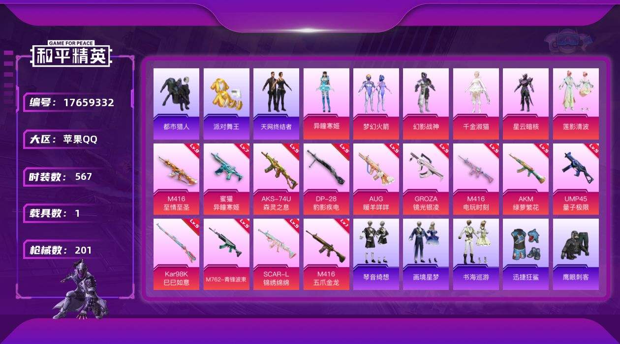 【558213】【可二次】【苹果QQ】龟仙人 AKM-绿萝繁花 M762-青锋波束 M416-五爪金龙 漫步者 繁龙极客飞行器 都市猎人 迅捷狂鲨 星之彼岸飞行器 祥瑞锦鲤飞行器 忍者信条 M416-电玩时刻 SCAR-L-锦绣绵绵 M416-至情至圣 UMP45-量子极限 梦幻火箭 幻影战神 派对舞王 暗影哥特 雪山精英