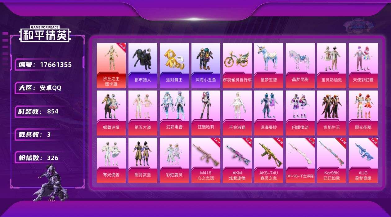 【558772】【不可二次】【安卓QQ】龟仙人 S686-奇异狩猎者 漫步者 P90-沙丘之主 萌兔起飞 都市猎人 Mini14-林间仙鹿 沙丘之主-图卡盟 AUG-星梦奇缘 M416-心之恋语 浪漫假日 深海小丑鱼 瑞龙福将 激萌小黄鸭 蝶舞迷情 浪漫天命 激萌罗小黑 团圆交子 AKM-奇异狩猎者 深海曼妙 星梦玉骢 M762-瑞龙福将 潮萌小黄鸭 黑色刀锋 梦幻舞会飞行器 彩虹鹿灵 AKM-