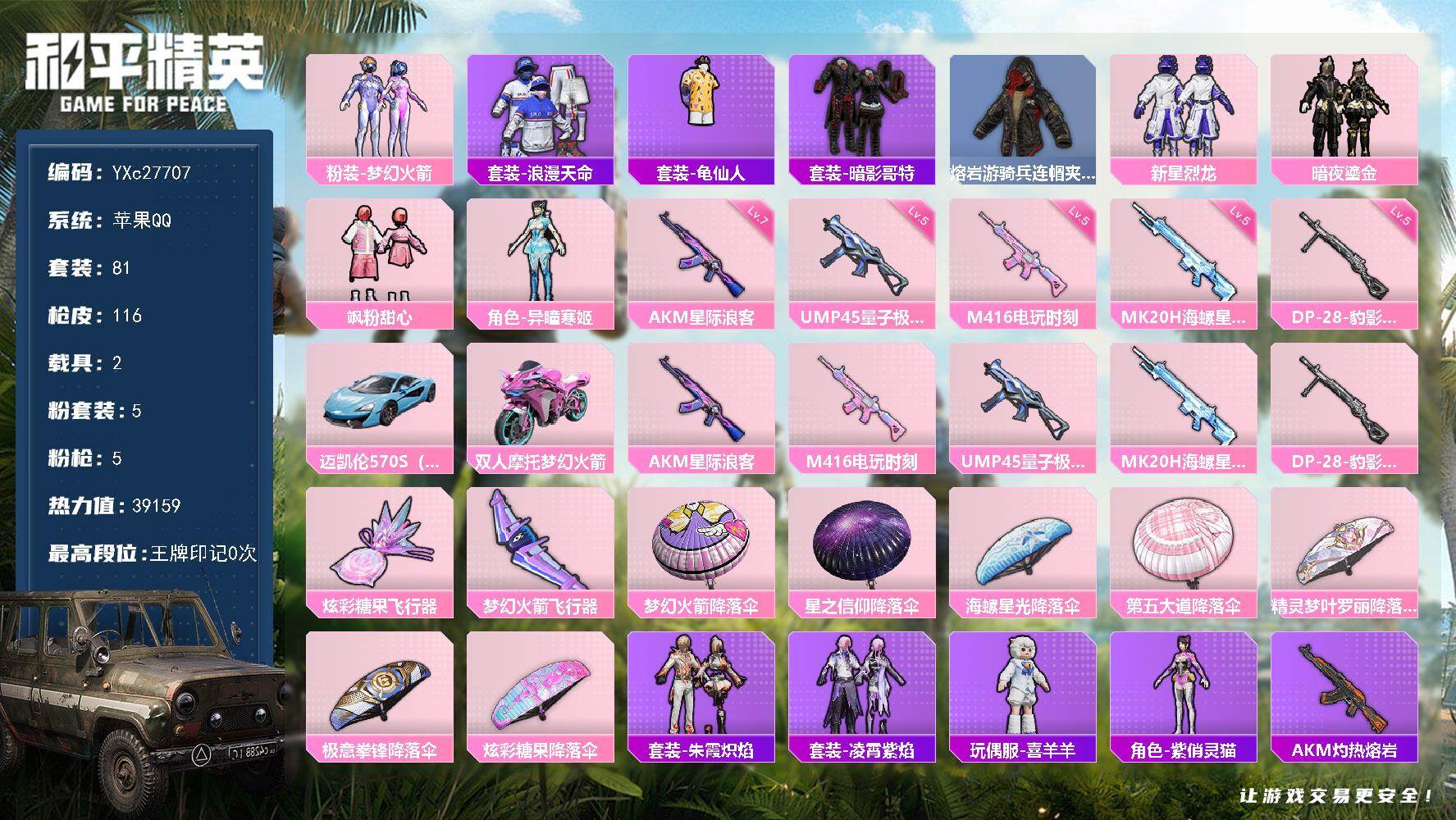 游戏区服:和平精英 / 苹果系统 / QQ帐号