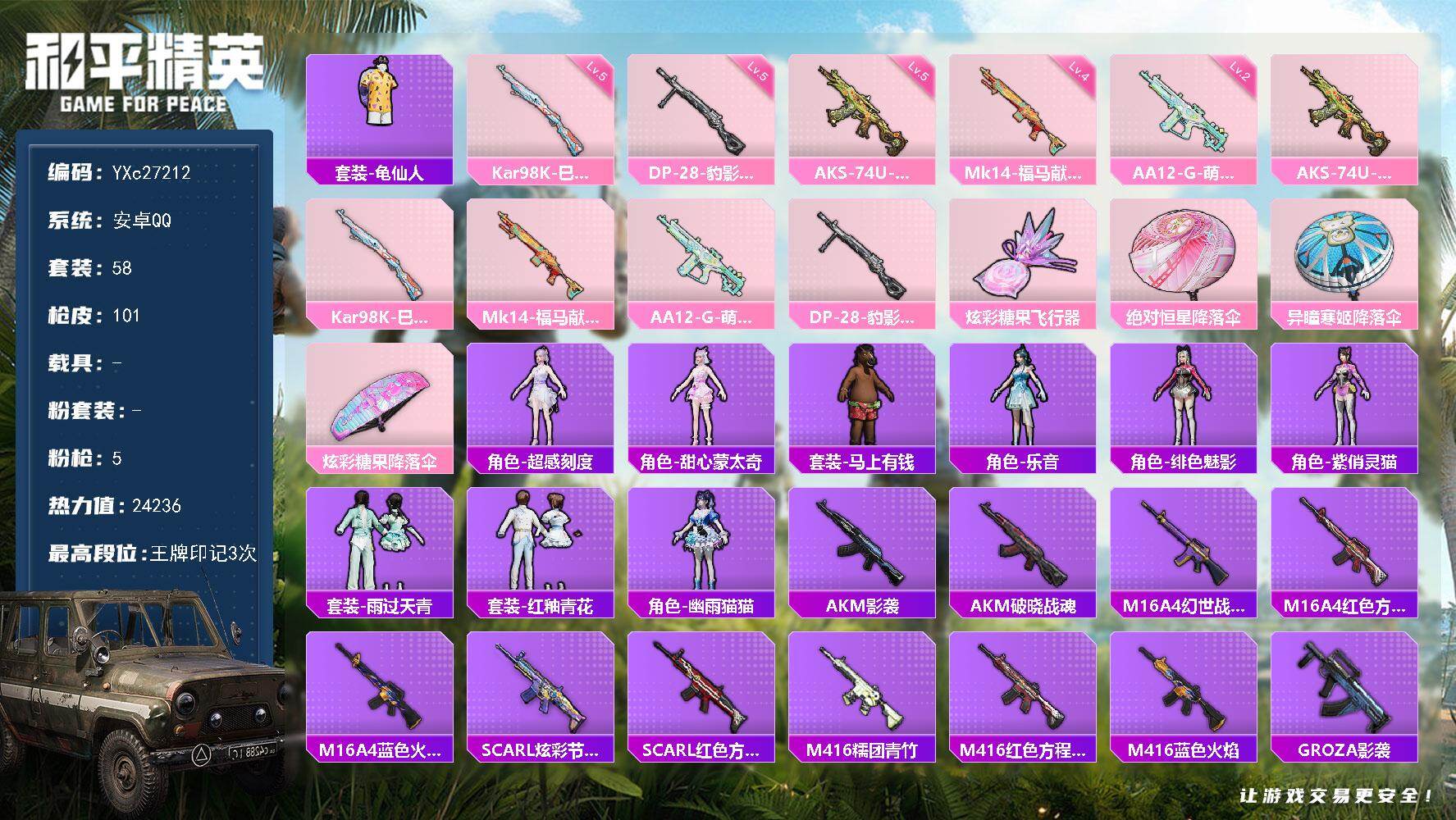游戏区服:和平精英 / 安卓系统 / QQ账号
