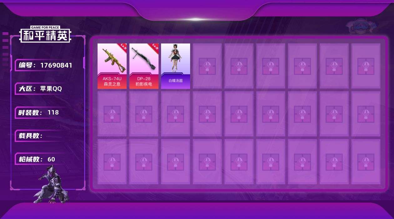 游戏区服:和平精英 / 苹果系统 / QQ帐号
