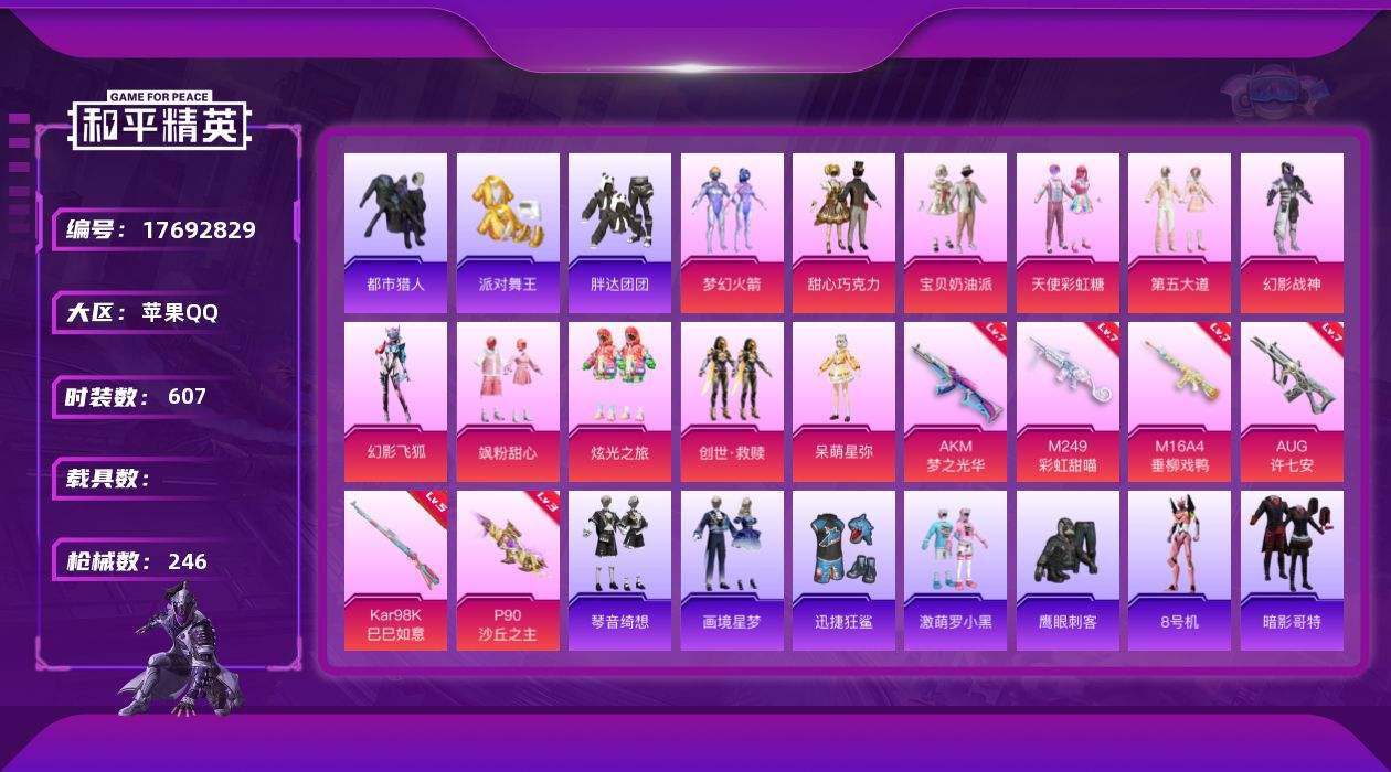 【562295】【不可二次】【苹果QQ】龟仙人 M16A4-垂柳戏鸭 S686-奇异狩猎者 漫步者 P90-沙丘之主 都市猎人 迅捷狂鲨 甜心巧克力 极速红龙 M249-彩虹甜喵 梦幻火箭 AKM-梦之光华 幻海精灵飞行器 天使彩虹糖 粉红小猪 宝贝奶油派 幻影战神 派对舞王 暗影哥特 激萌罗小黑 胖达团团