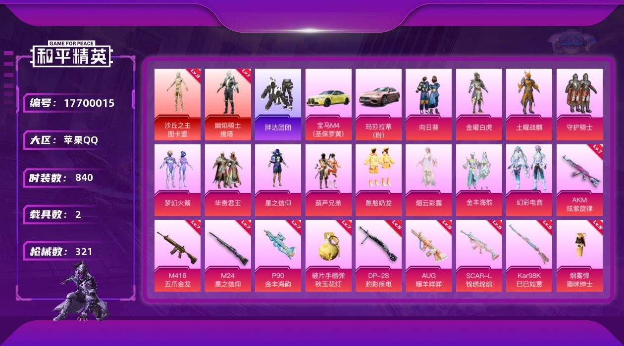 【563437】【可二次】【苹果QQ】星之信仰 P90-金丰海韵 M416-五爪金龙 金曜白虎 潮萌小黄鸭 向日葵 东方飞龙 UMP45-宇宙意志 华贵君王 土耀战麟 葫芦兄弟 AKM-炫紫旋律 梦幻火箭 守护骑士 UMP45-相思残雪 金耀白虎 浪漫波比 玛莎拉蒂粉色 激萌小黄鸭 M24-星之信仰 土曜战麒 胖达团团