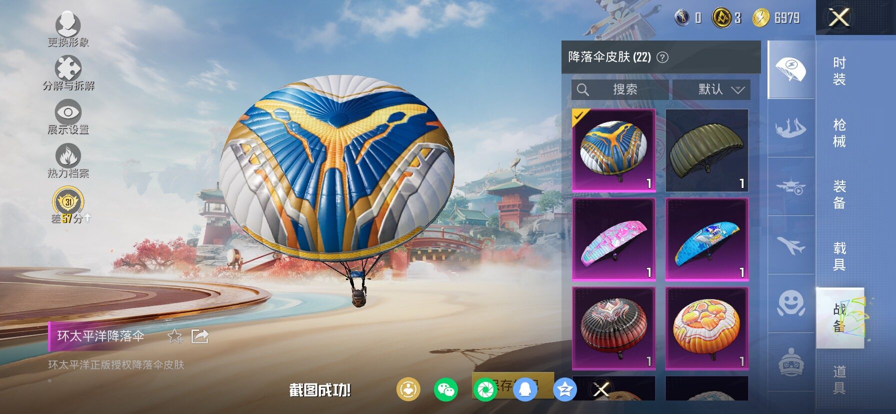 【565210】【不可二次】【苹果QQ】音爆索尼克降落伞 橘柚倾心降落伞 漫步者 都市猎人 炙焰牛王降落伞 环太平洋降落伞