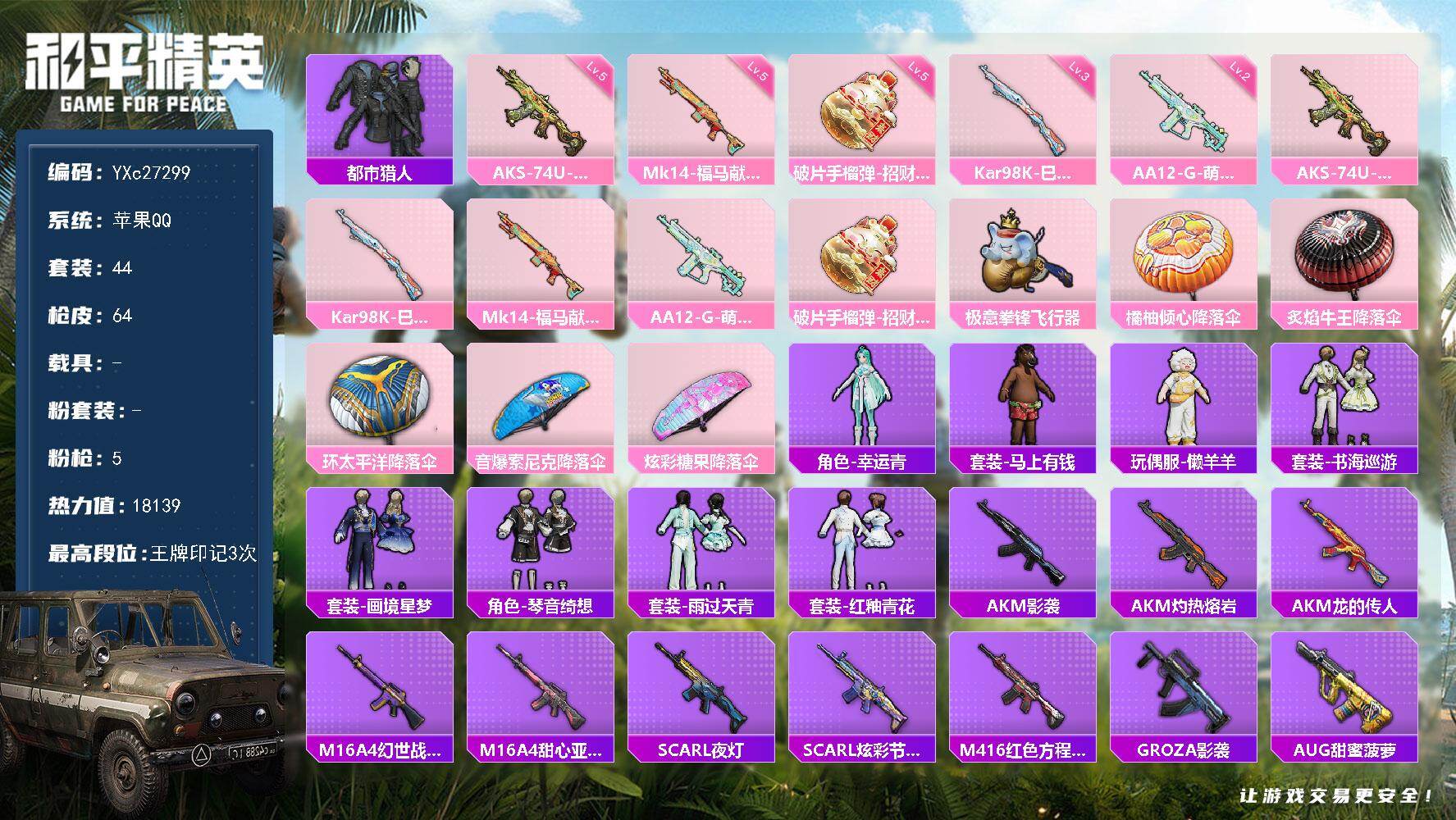 游戏区服:和平精英 / 苹果系统 / QQ帐号