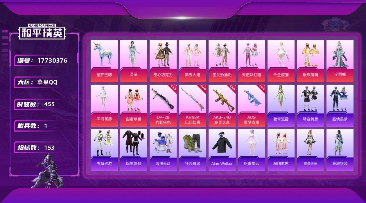 【567481】【不可二次】【苹果QQ】AUG-星梦奇缘 星梦玉骢 AKM-缤纷海域 天使彩虹糖 M24-奇异狩猎者 宝贝奶油派 甜心巧克力 狂沙舞者 极速红龙 浪漫天命 暗影哥特