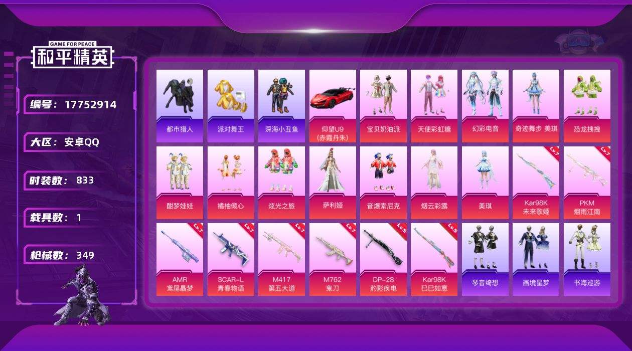 【570599】【不可二次】【安卓QQ】龟仙人 恐龙拽拽 都市猎人 M24-奇异狩猎者 PKM-江南烟雨 酣梦娃娃 M417射手步枪 极速红龙 仰望U9(赤霞丹朱) 音爆索尼克 Kar98k-未来歌姬 天使彩虹糖 粉红小猪 深海小丑鱼 宝贝奶油派 派对舞王 神秘黑猫 M417-第五大道 SCAR-L-青春物语 闪光银龙飞行器