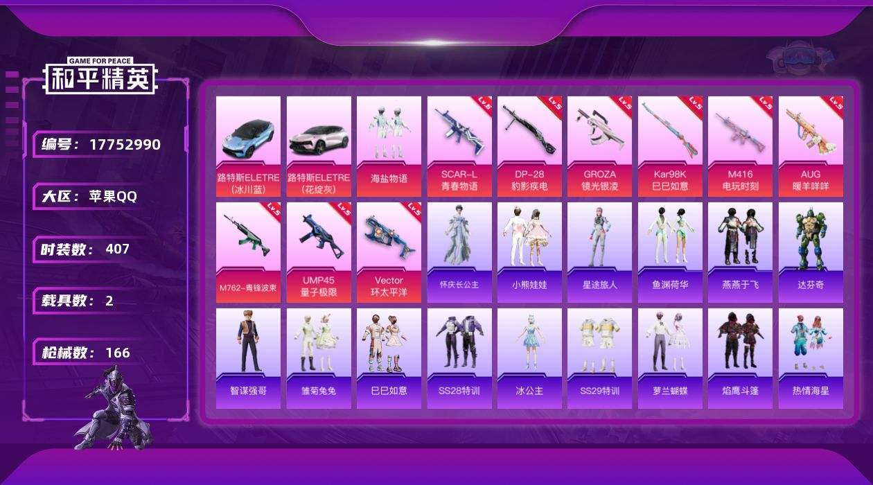 【570628】【可二次】【苹果QQ】M416-电玩时刻 海盐物语 M762-青锋波束 UMP45-量子极限 路特斯EL灰色 M762-瑞龙福将 瑞龙福将 Vector-环太平洋 SCAR-L-青春物语 青春物语飞行器 路特斯EL蓝色 团圆交子