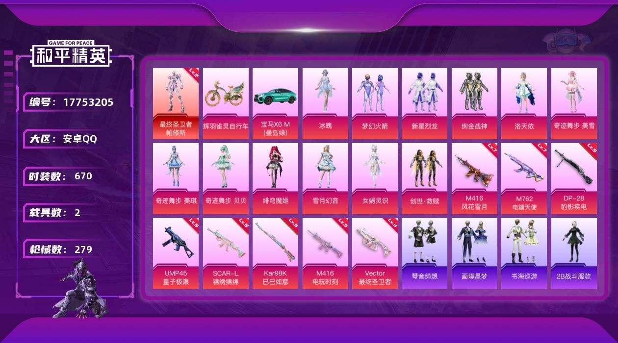 【570690】【不可二次】【安卓QQ】M416-电玩时刻 SCAR-L-锦绣绵绵 龟仙人 M416-风花雪月 绚金战神 M762-电糖天使 UMP45-量子极限 梦幻火箭 新星烈龙 洛天依 金羽特工 最终圣卫者-帕修斯