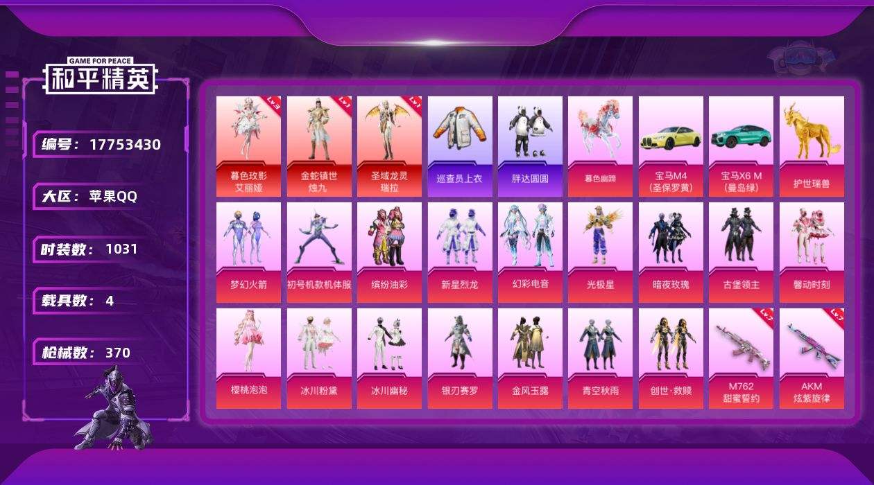 【570740】【不可二次】【苹果QQ】M762-甜蜜誓约 龟仙人 大橘为重 忍者信条 梦起落英 银刃赛罗 M416-仓鼠灰灰 缤纷油彩 浪漫波比 馨动时刻 纯白誓言 M762-瑞龙福将 潮萌小黄鸭 黑色刀锋 新侠客行 狂沙舞者 金羽特工 AKM-炫紫旋律 金风玉露 白月香洋装 暗夜玫瑰 星夜魔法师飞行翼 SLR-暗夜玫瑰 M416-五爪金龙 新星烈龙 机械英豪 金蛇镇世-烛九 巡查衣 软嫩糖心