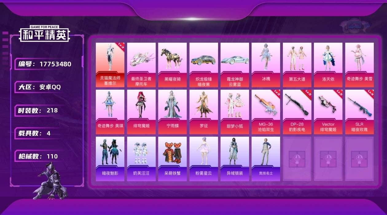 游戏区服:和平精英 / 安卓系统 / QQ账号