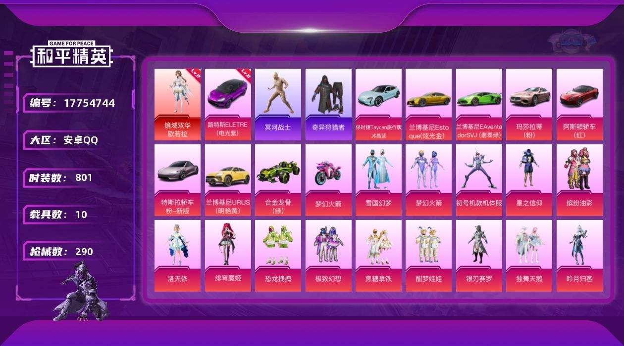 【571014】【可二次】【安卓QQ】M762-甜蜜誓约 Kar98K-绿意幻情 龟仙人 双人摩托梦幻火箭 恐龙拽拽 大橘为重 M249-古堡领主 路特斯EL紫色 梦起落英 兰博轿车金色 空客蔚蓝之翼 银刃赛罗 M416-仓鼠灰灰 M416-心之恋语 缤纷油彩 浪漫波比 天之羽翼 醒狮腾龙 纯白誓言 星之信仰 SCAR-L-梦幻火箭 兰博SVJ绿色 M24-镜域双华 M762-瑞龙福将 齐天大圣