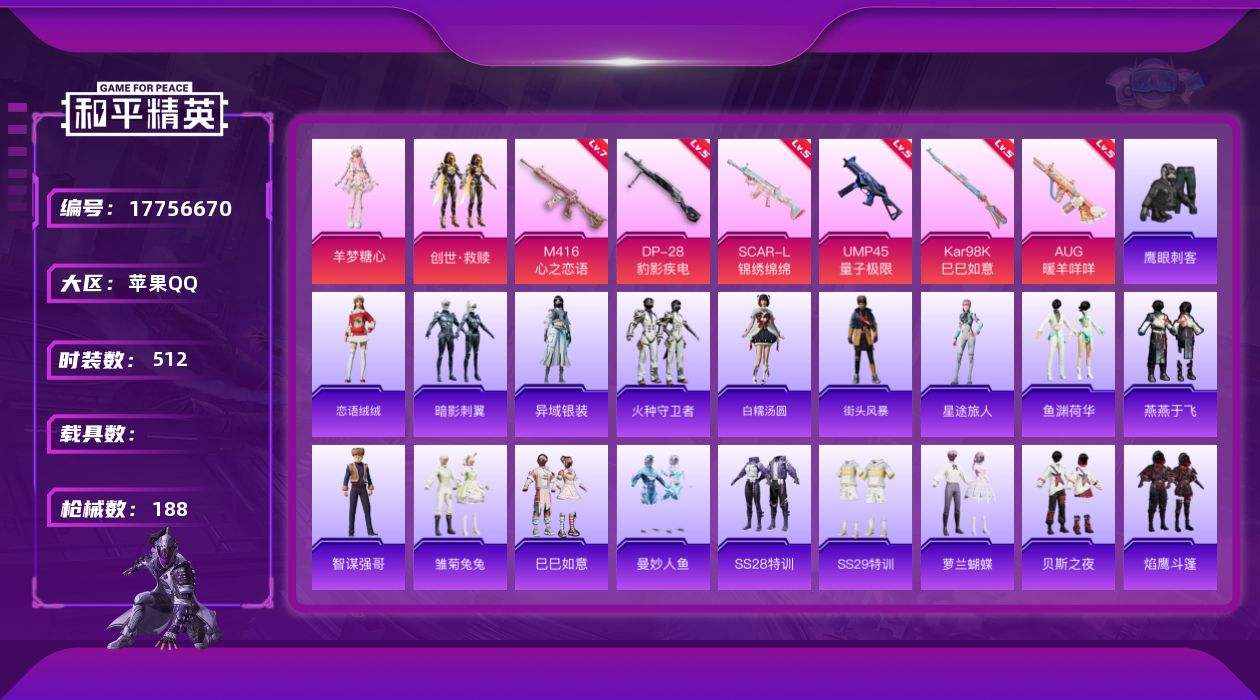 游戏区服:和平精英 / 苹果系统 / QQ帐号
