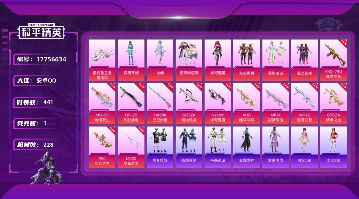 游戏区服:和平精英 / 安卓系统 / QQ账号