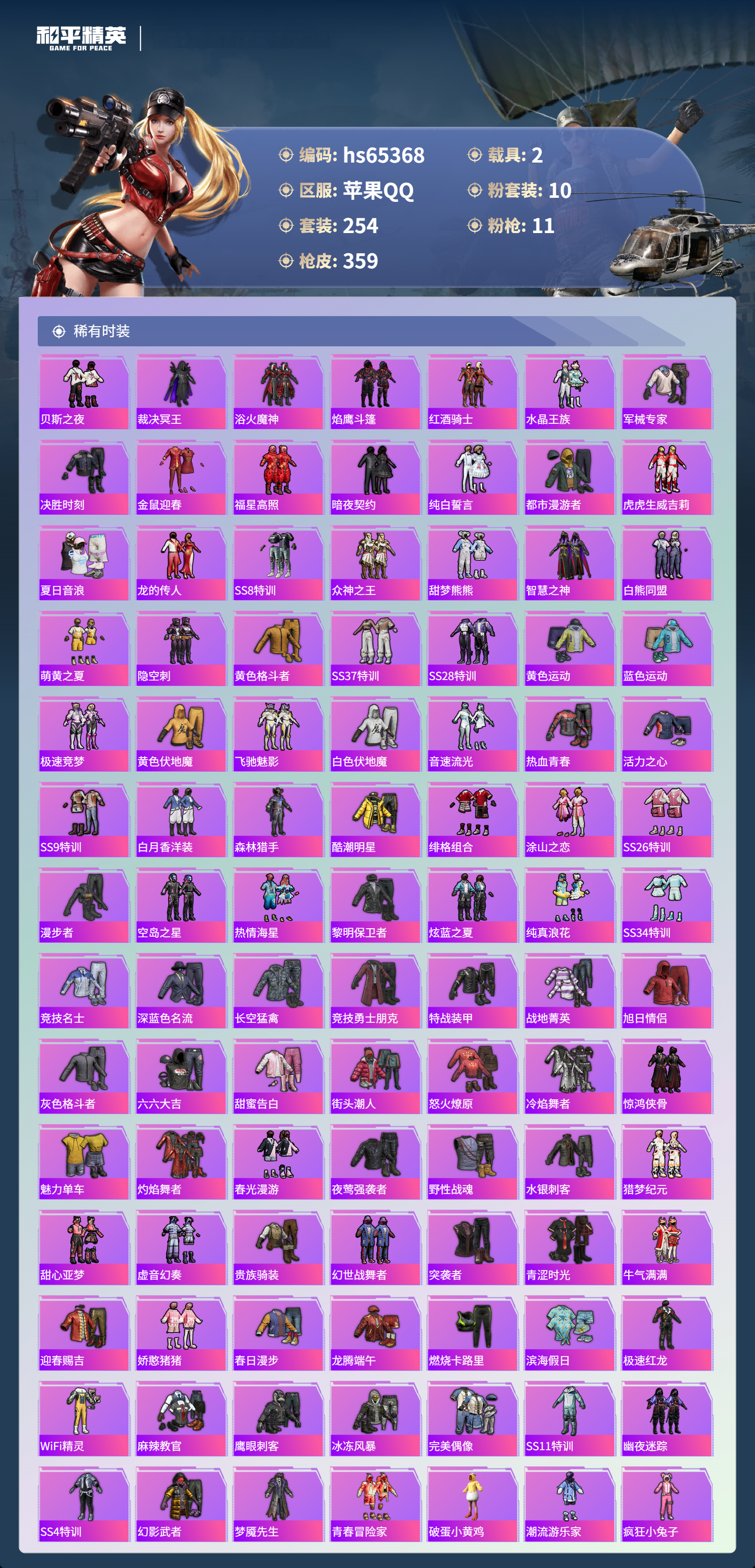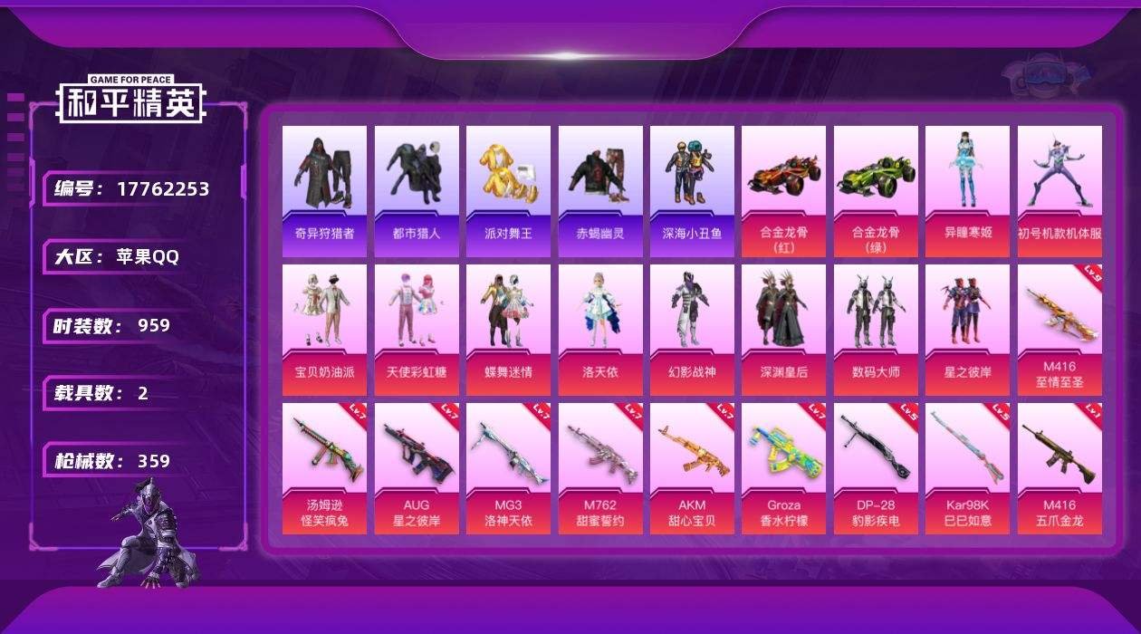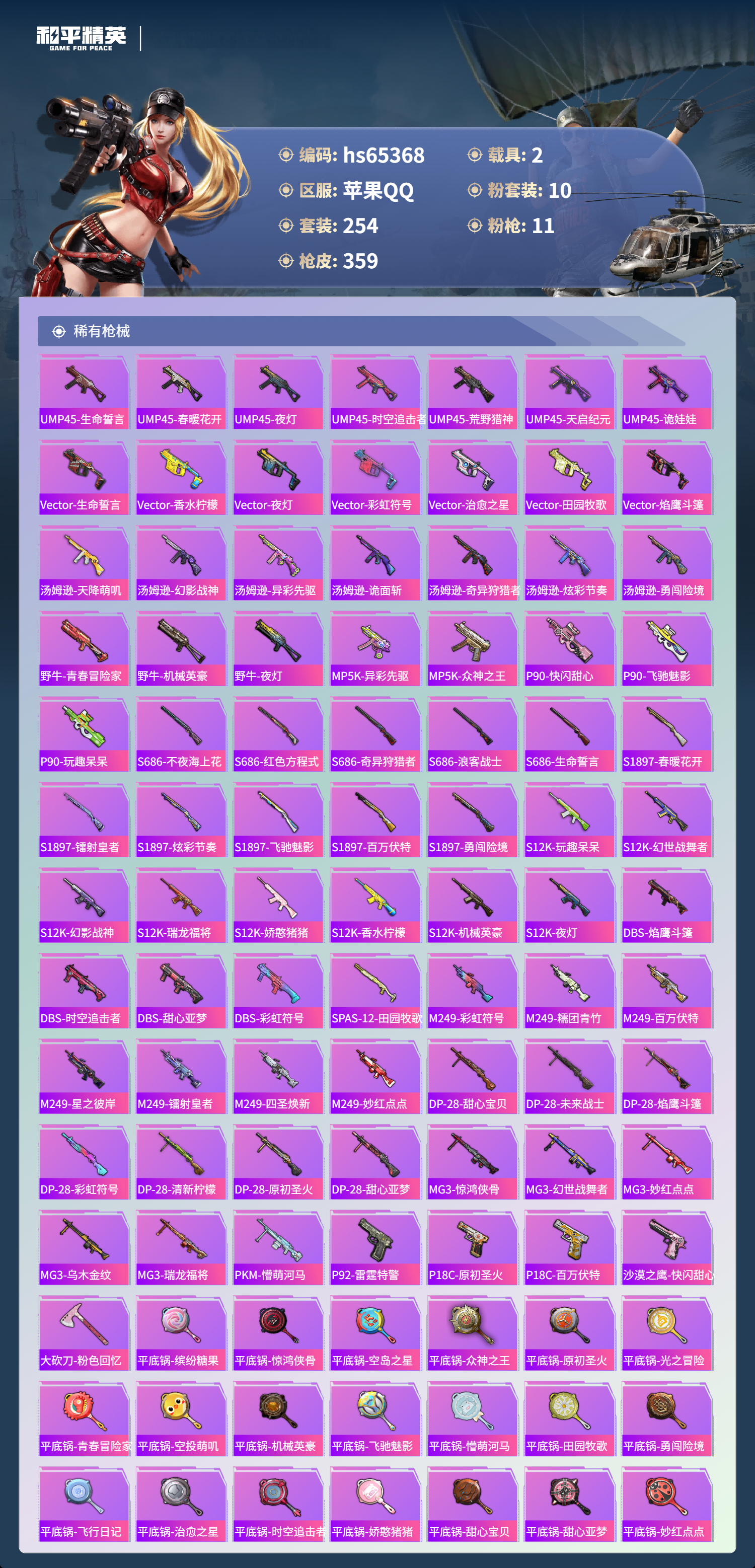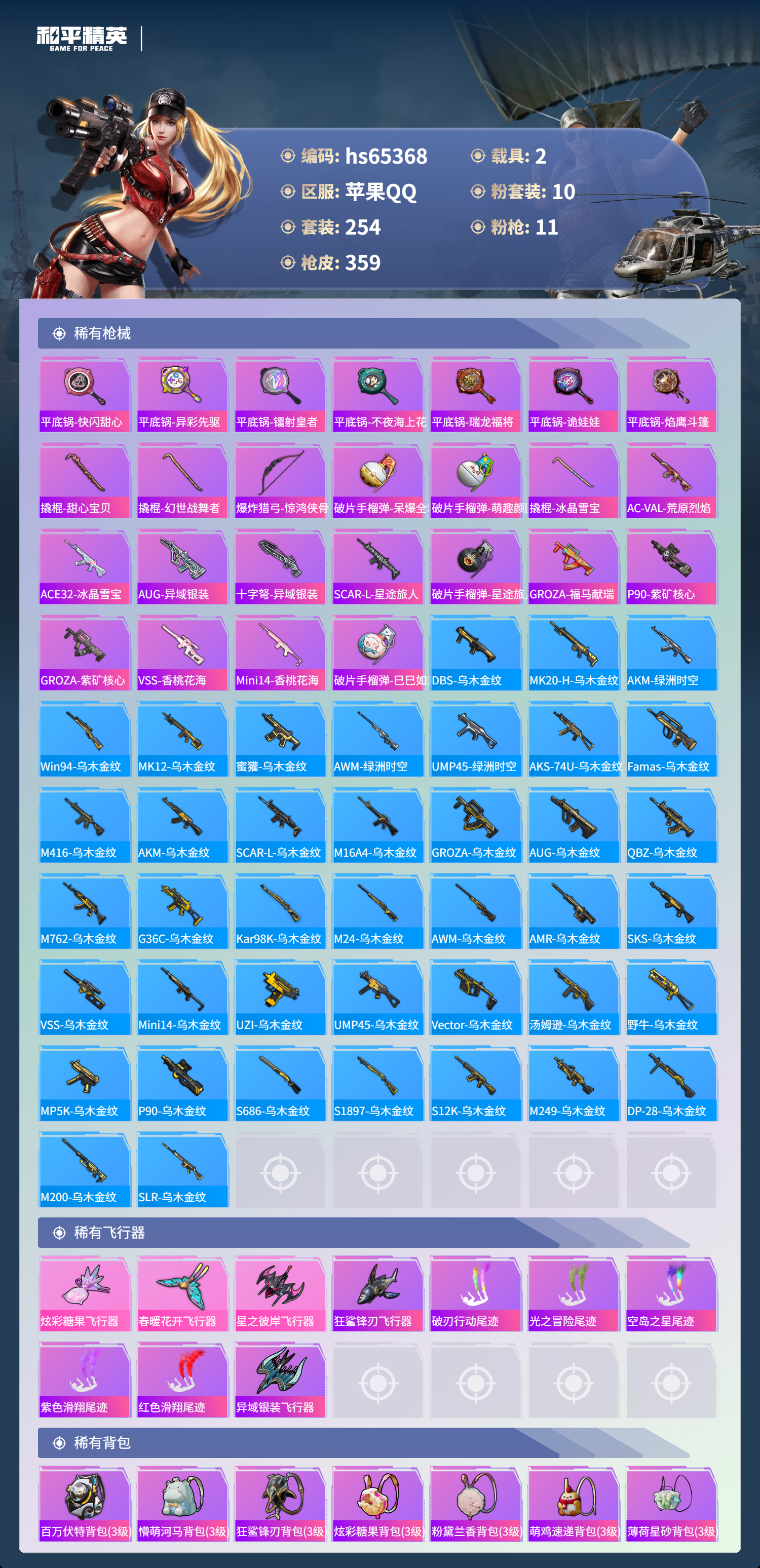 【572101】【可二次】【苹果QQ】M762-甜蜜誓约 龟仙人 水银刺客 漫步者 都市猎人 M762-奇异狩猎者 M416-至情至圣 M416-心之恋语 深海小丑鱼 蝶舞迷情 AUG-星之彼岸 AWM-黄金龙骨 AKM-甜心宝贝 纯白誓言 AKM-奇异狩猎者 合金龙骨红色 迅捷狂鲨 M762-瑞龙福将 狂沙舞者 白月香洋装 汤姆逊-怪笑疯兔 S686-奇异狩猎者 深渊皇后 M416-五爪金龙