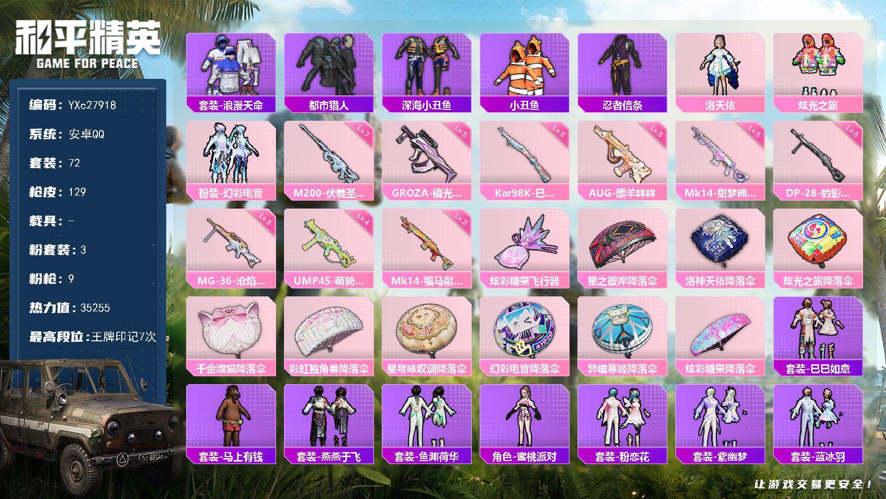 游戏区服:和平精英 / 安卓系统 / QQ账号