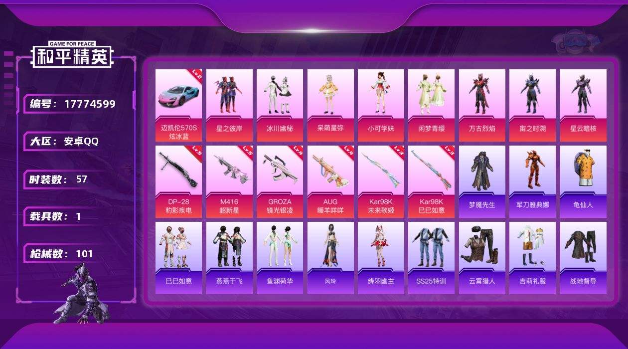 游戏区服:和平精英 / 安卓系统 / QQ账号