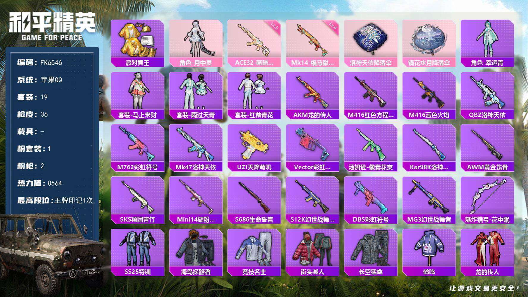 游戏区服:和平精英 / 苹果系统 / QQ帐号