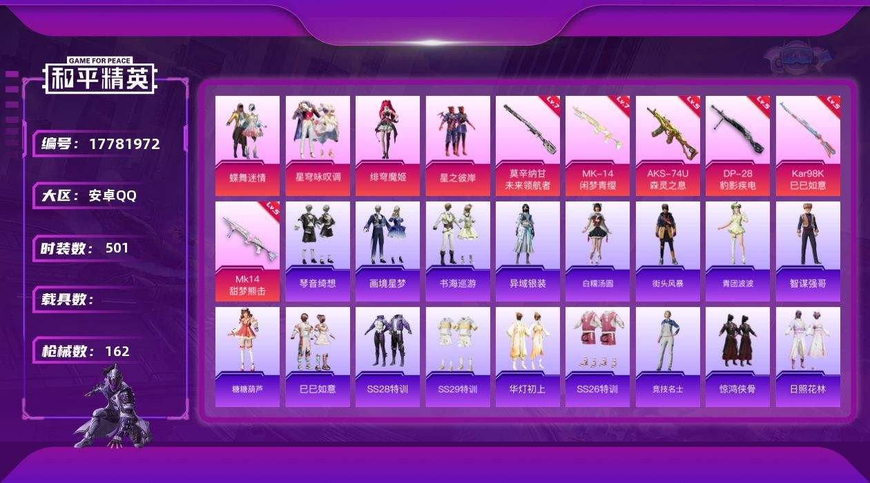 游戏区服:和平精英 / 安卓系统 / QQ账号