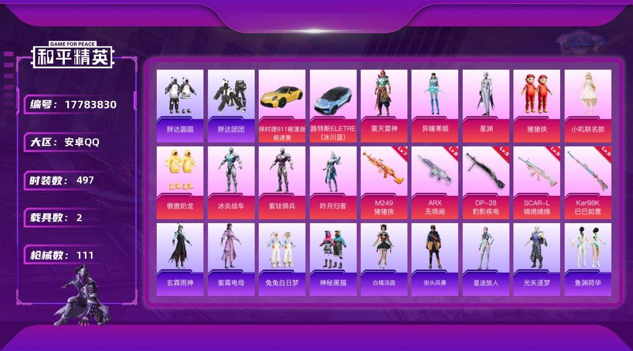 【575163】【可二次】【安卓QQ】龟仙人 M762-瑞龙福将 小叽联名款 极速红龙 SCAR-L-锦绣绵绵 吟月归客 AKM-缤纷海域 瑞龙福将 M249-猪猪侠 神秘黑猫 猪猪侠 胖达团团 路特斯EL蓝色 胖达圆圆 团圆交子