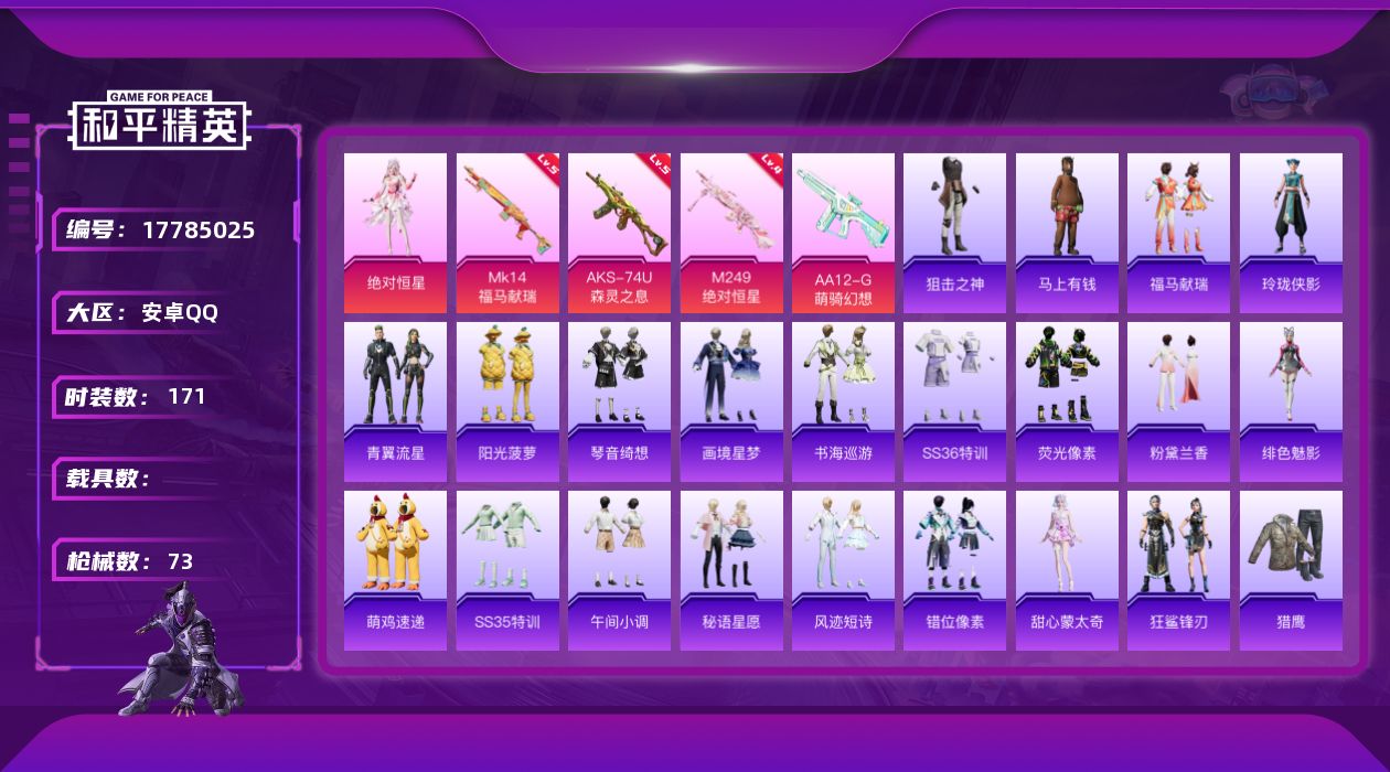游戏区服:和平精英 / 安卓系统 / QQ账号