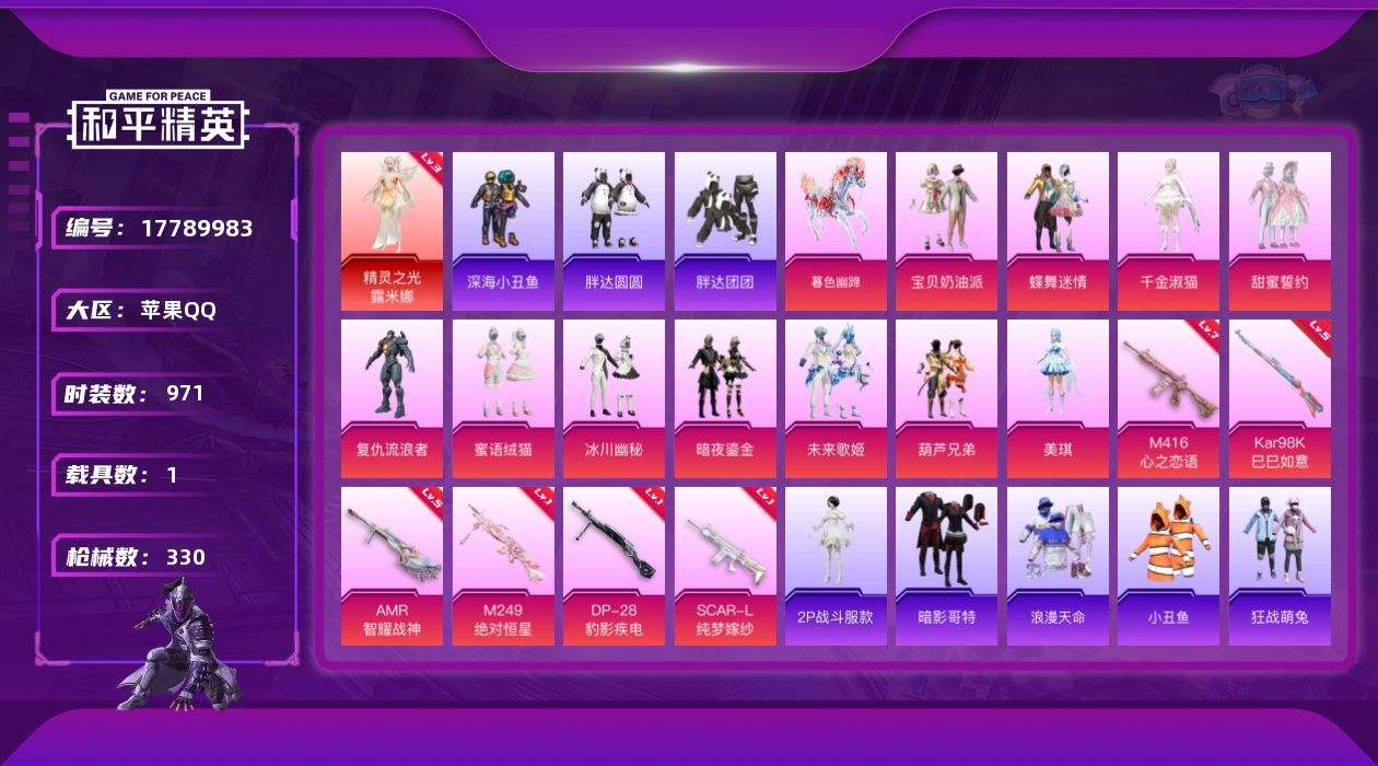 【576205】【不可二次】【苹果QQ】龟仙人 大橘为重 M249-古堡领主 机械英豪 极速红龙 精灵之光-露米娜 葫芦兄弟 M416-心之恋语 浪漫假日 深海小丑鱼 浪漫波比 瑞龙福将 激萌小黄鸭 蝶舞迷情 浪漫天命 胖达团团 纯白誓言 胖达圆圆 团圆交子 迅捷狂鲨 暗夜契约 M762-瑞龙福将 潮萌小黄鸭 春暖花开飞行器 AKM-缤纷海域 粉红小猪 SCAR-L-纯梦嫁纱 宝贝奶油派 甜蜜誓