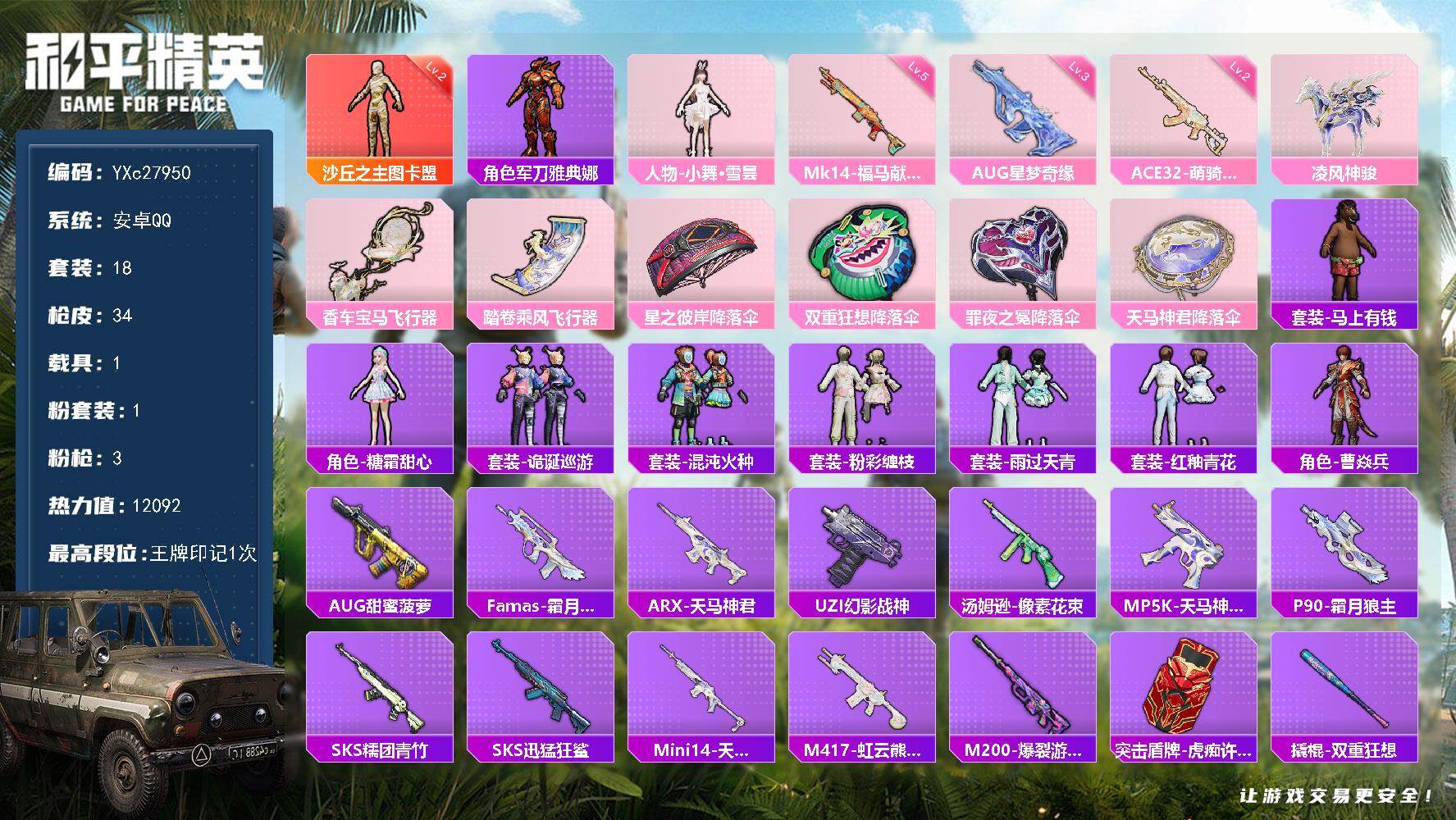 游戏区服:和平精英 / 安卓系统 / QQ账号