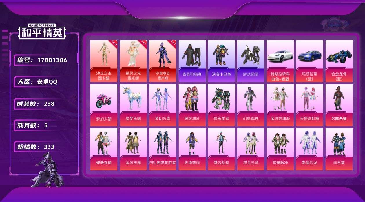 【577721】【可二次】【安卓QQ】合金龙骨蓝色 双人摩托梦幻火箭 M416-五爪金龙 新星烈龙 特斯拉3银色 天禅智恒 向日葵 AWM-焰龙焚天 快乐主宰 缤纷油彩 深海小丑鱼 浪漫波比 蝶舞迷情 慧云及圣 骨龙祭渊 火耀朱雀 奇异狩猎者 琉璃脉冲 狩月元帅 银龙傲海 玛莎拉蒂蓝色 AKM-炫紫旋律 金风玉露 M762甜蜜誓言 梦幻火箭 天使彩虹糖 PEL轰鸣竞梦者 宝贝奶油派 幻影战神 俏