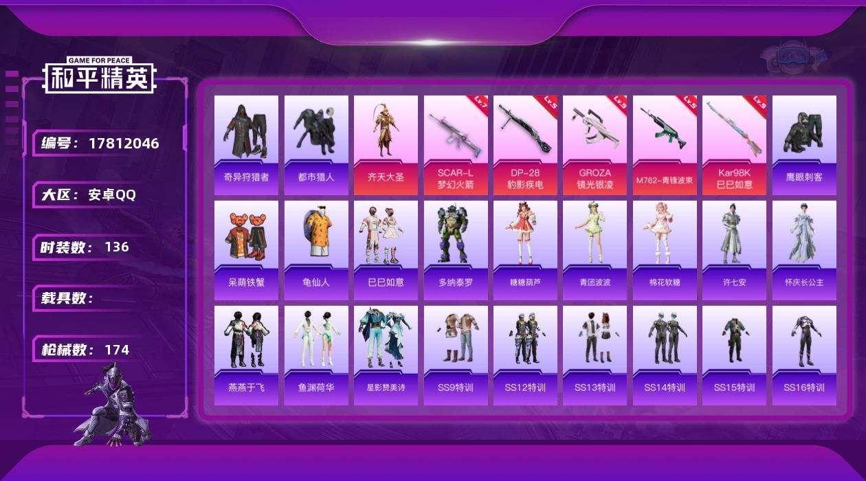 游戏区服:和平精英 / 安卓系统 / QQ账号