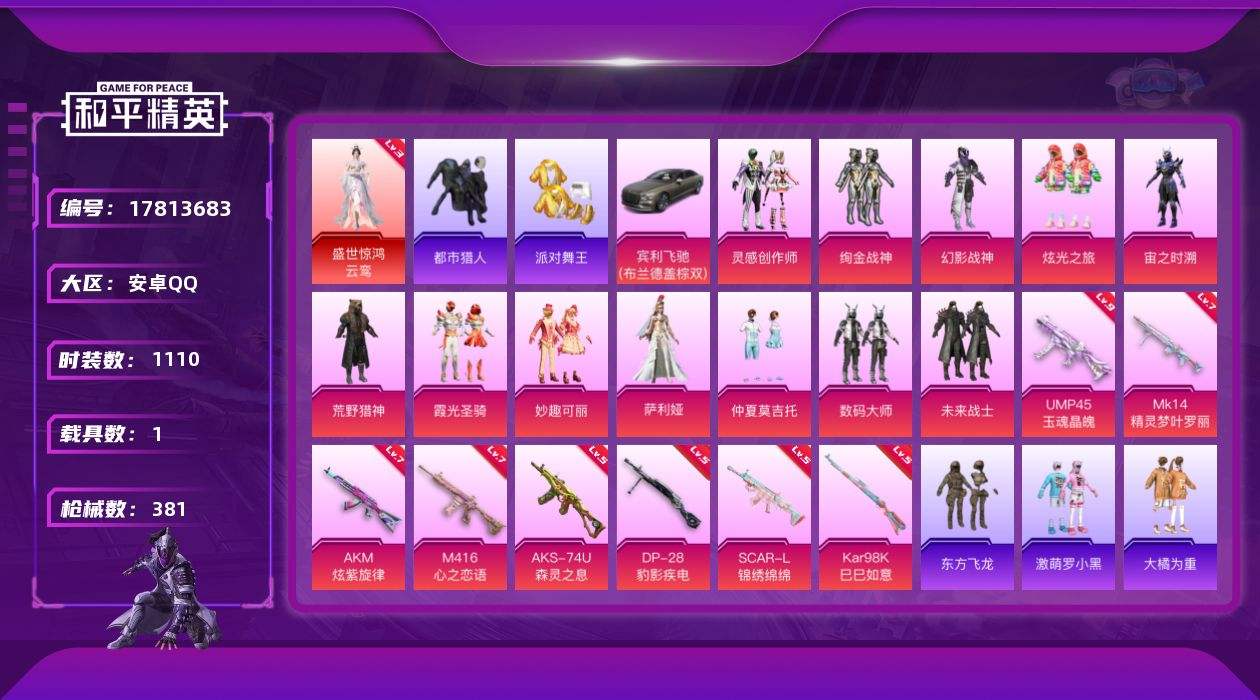 【579168】【不可二次】【安卓QQ】龟仙人 MK14-精灵梦叶罗丽 水银刺客 大橘为重 漫步者 都市猎人 东方飞龙 机械英豪 极速红龙 M762-奇异狩猎者 盛世惊鸿-云鸾 M416-心之恋语 浪漫天命 激萌罗小黑 绚金战神 UMP45-玉魂晶魄 齐天大圣飞行器 黑色刀锋 新侠客行 龙翔九天飞行器 荒野猎神 SCAR-L-锦绣绵绵 AKM-炫紫旋律 白月香洋装 AKM-缤纷海域 AKM-百万